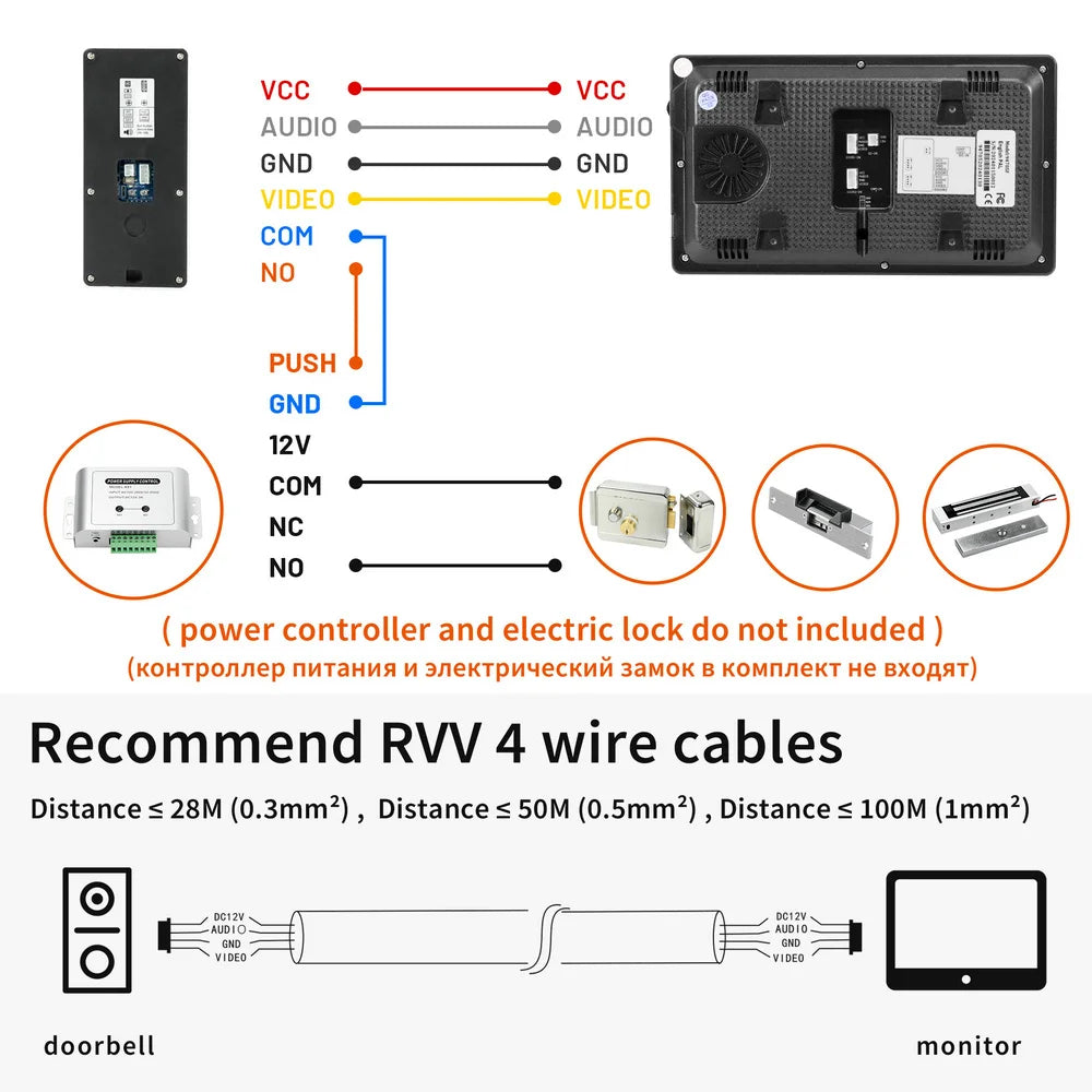 5. 1 monitor supports 2 outdoor doorbells , monitor connect to doorbell by cables;