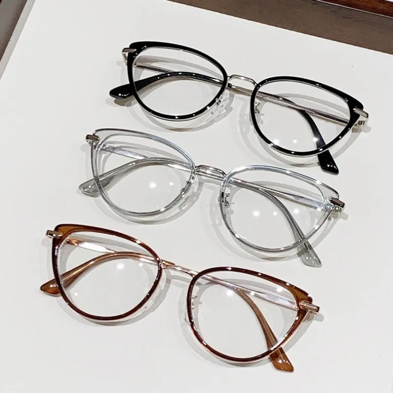 Ins Cat Eye Presbyopia Glasses Cold Tea Color HD Anti Blue Light Glasses Frame Advanced Plain Whitening Glasses