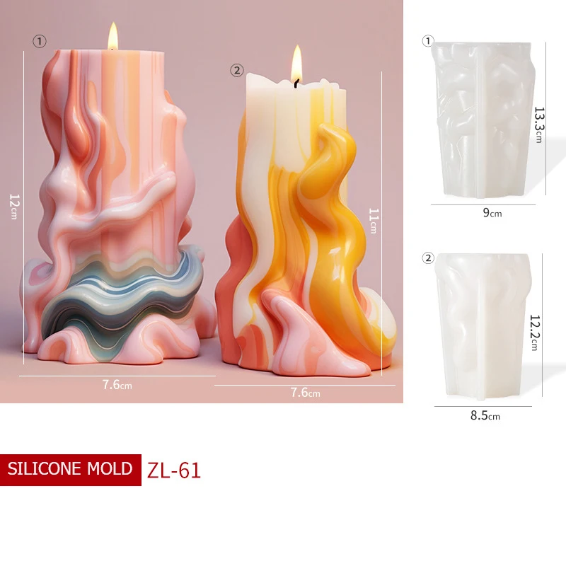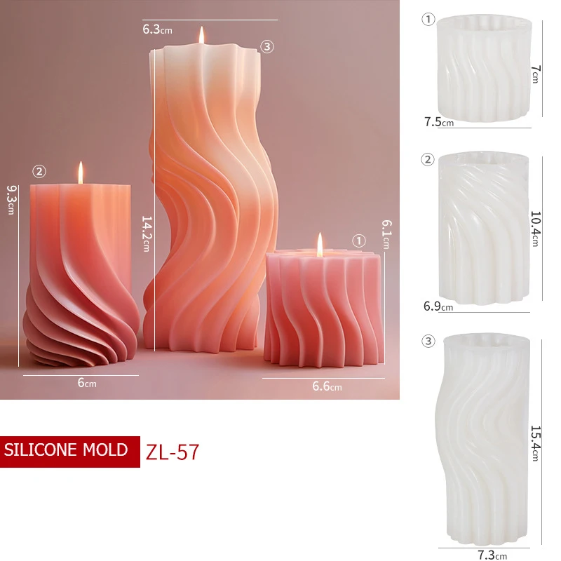 Irregular Wave Cylindrical Candle Silicone Mold With Geometric Shape Twisted Stripes Cylindrical Candle Mold Resin Gypsum Mold