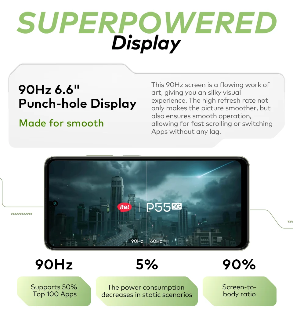 Itel P55 Plus P55+ Smartphone 50MP Super Clear Camera NFC Mobilephone 90Hz 6.6“ Fullview Display Dynamic Bar Mobile Cell Phone