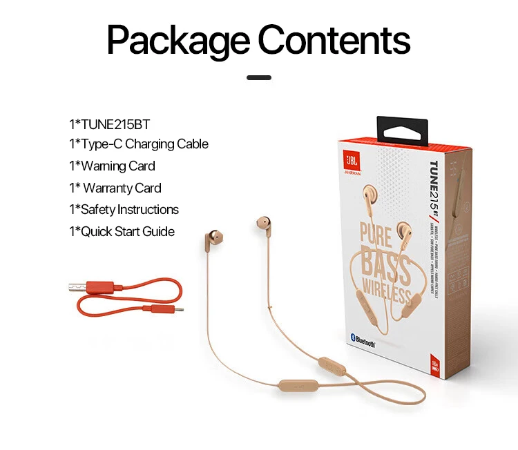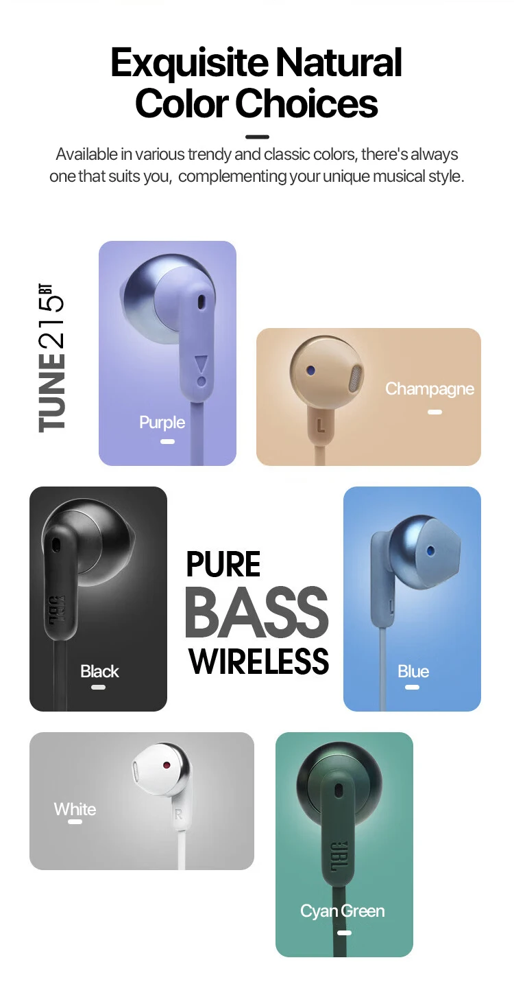 JBL TUNE215BT Wireless Bluetooth Headset Semi-in-ear Sports Headset with Long Battery Life