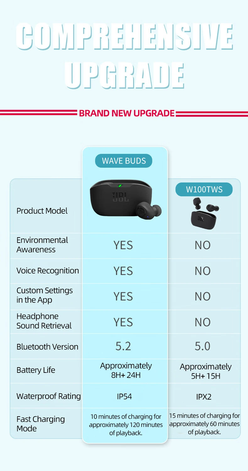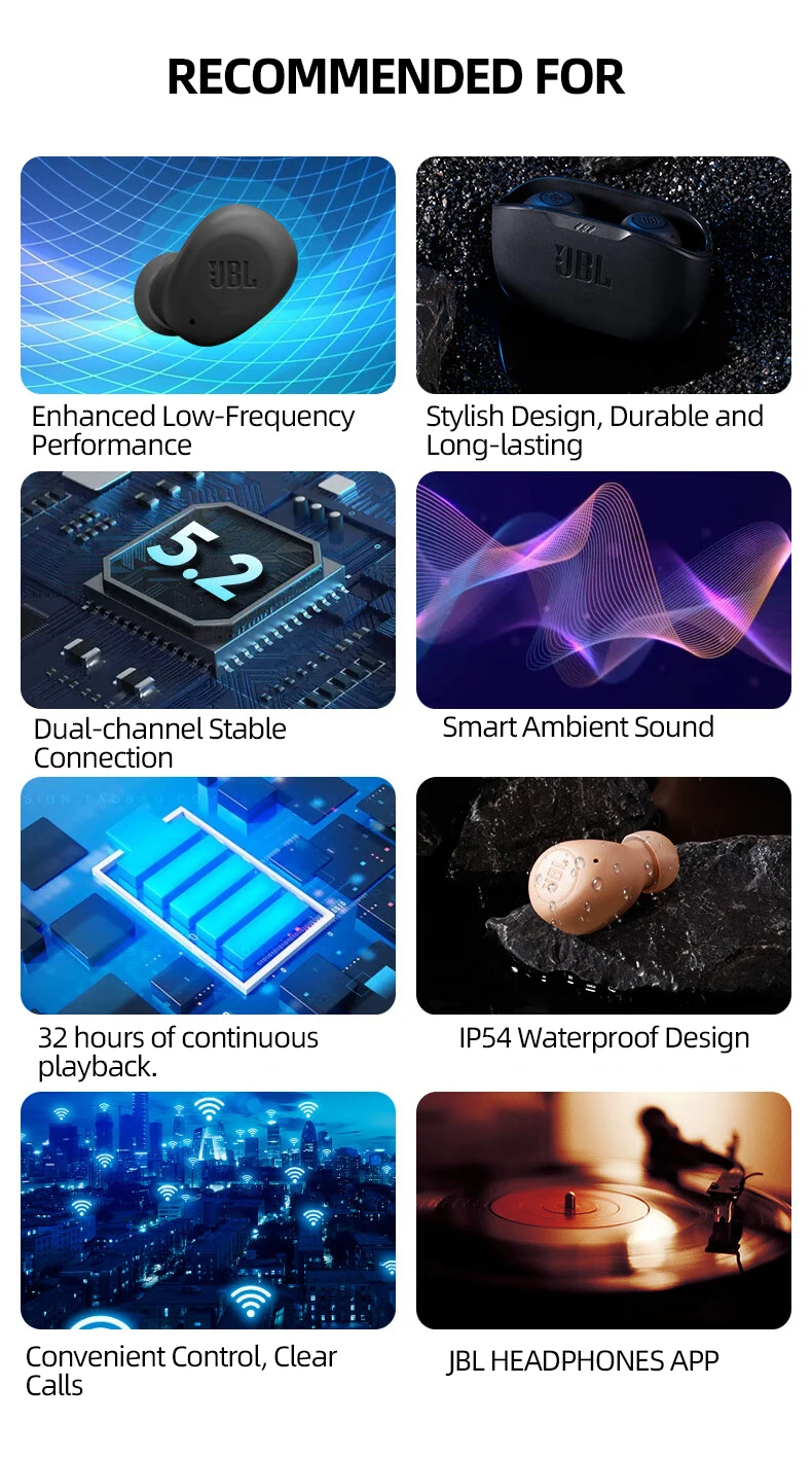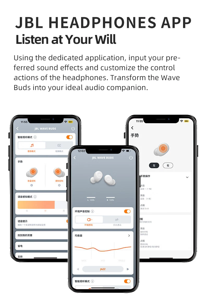 JBL WAVE BUDS True Wireless Bluetooth Headphones In-ear Music Headphones Intelligent Ambient Sound 100% Original