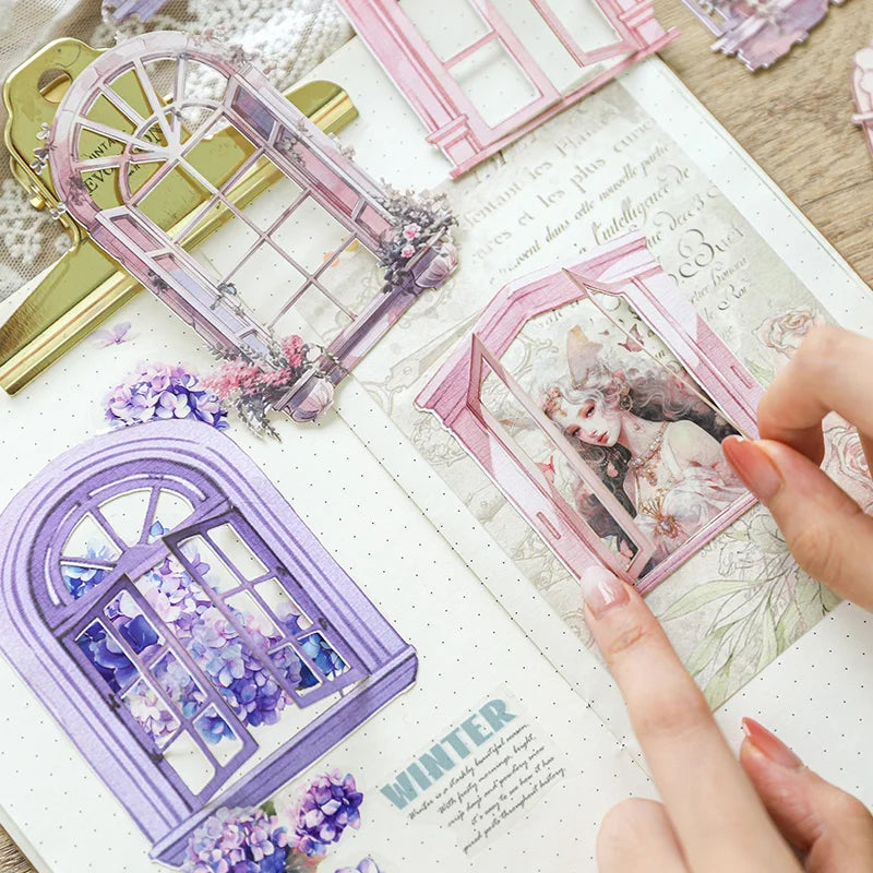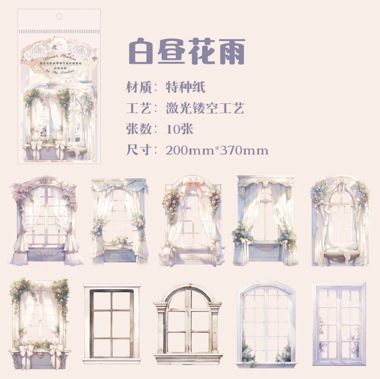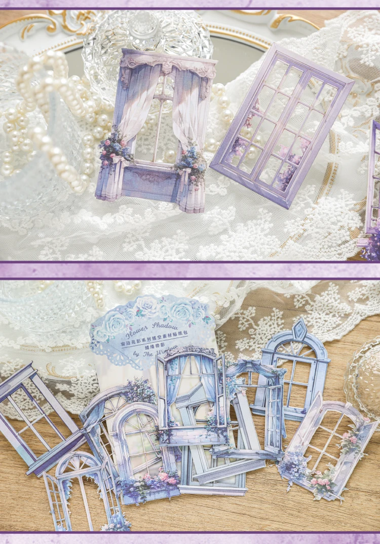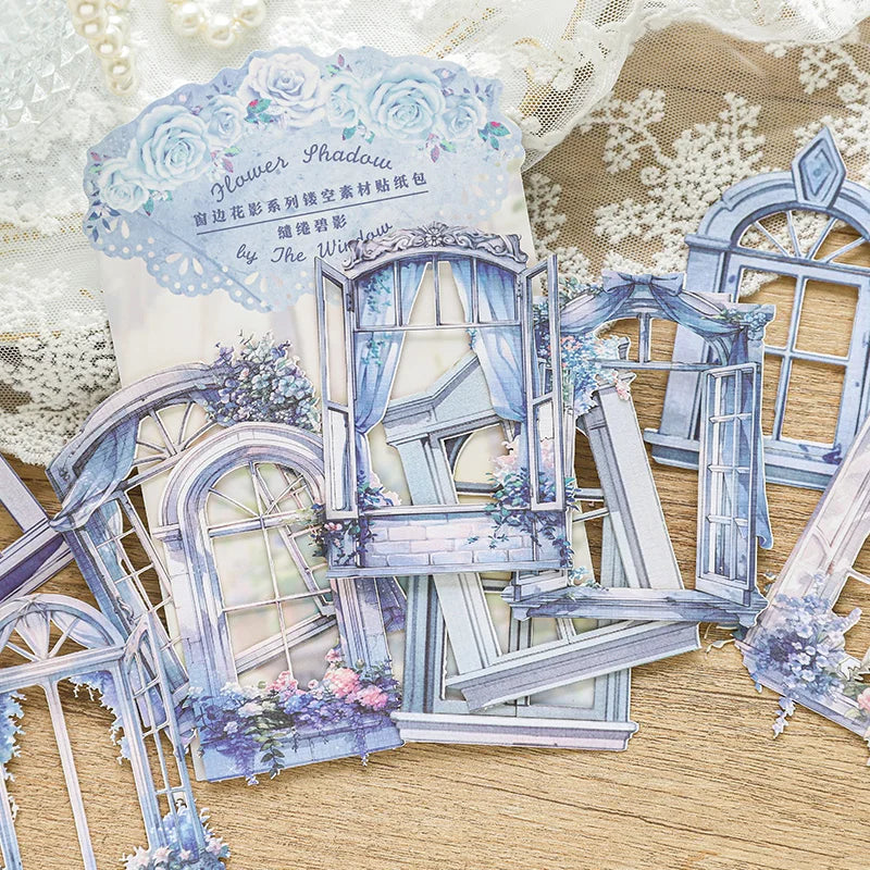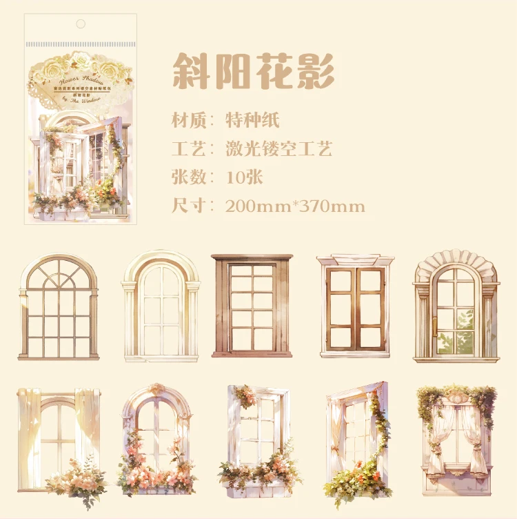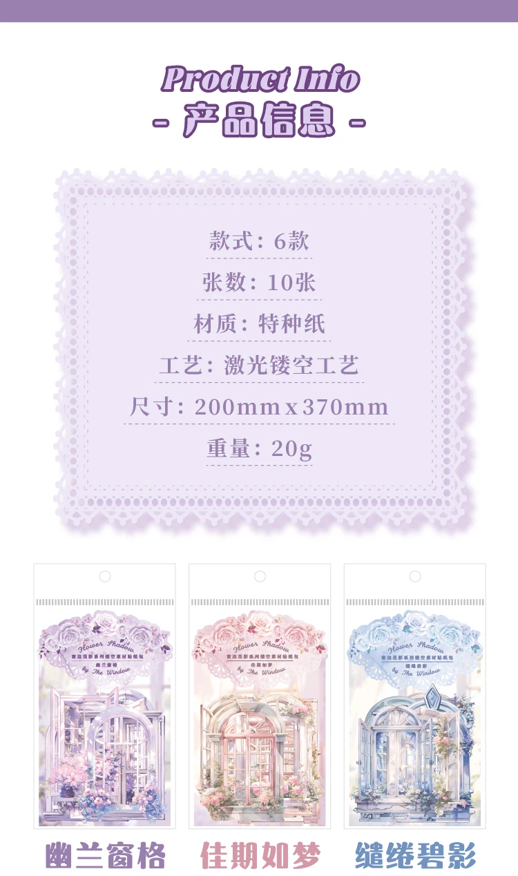 JIANQI 10 Sheets Window Flower Shadow Series Vintage Hollow Material Collage Sticker Creative DIY Journal Stationery