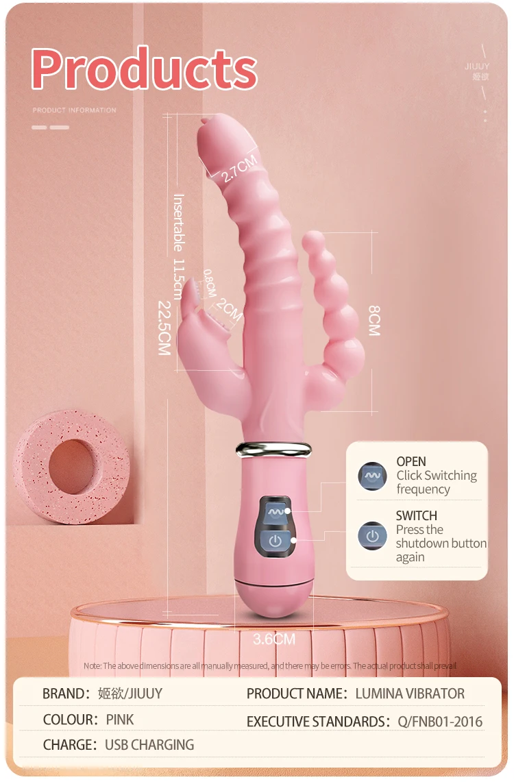 JIUUY 3 In 1 Dildo Rabbit Vibrator Clitoris Stimulator G-Spot Rechargeable Anal Clit Vibrator Adult Sex Toys for Women Couples