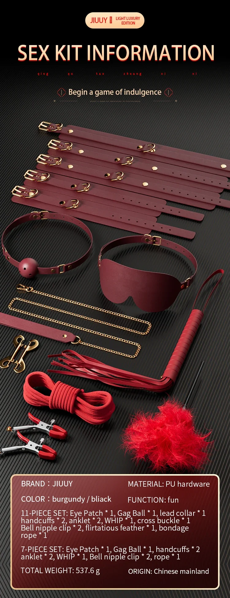 JIUUY Adult SM Sex Products Kits Bondage Gear Collar Butt Oral Erotic Bundle Blindfold Whip Sex BDSM Sex Game for Couples