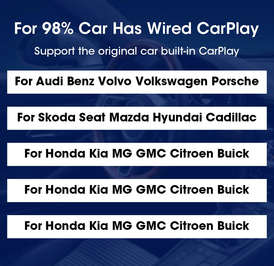 1. Please ensure that your original car has OEM Wired CarPlay or OEM Wired Android Auto. This product is suitable for cars with originalWired CarPlay and Wired Android Auto.