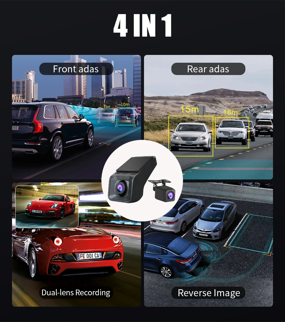 JMCQ USB ADAS Car DVR Dash For Android Auto Multimedia Player Front & Rear Dual Camera Loop Recording Motion Detection Cameras