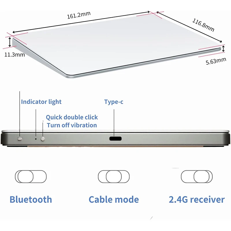 🖐️5: The box contains: trackpad x1/manual x1/cable x1/2.4G receiver x1/USB to type-c connector x1.