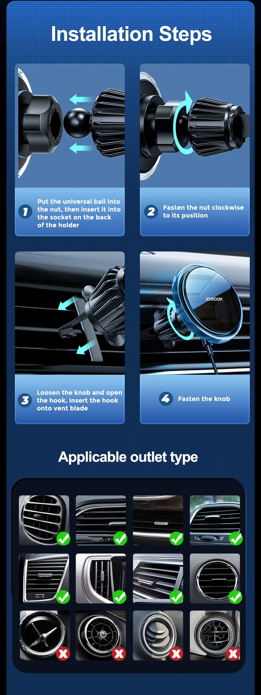 Joyroom Wireless Charging Magnetic Car Phone Holder Wireless Charger For iPhone 14 13 12 Pro Max Bluer Light Phone Holder In Car