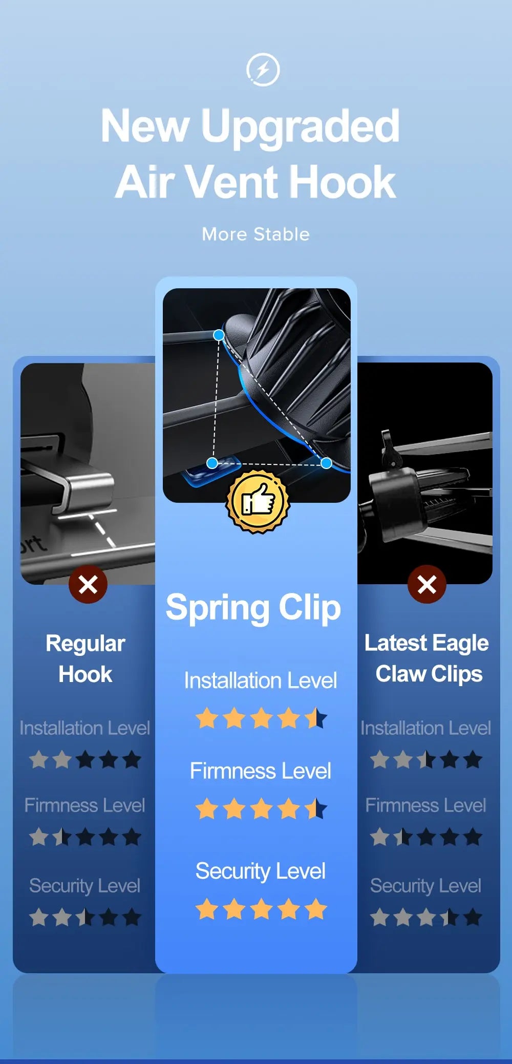 Imitating the olecranon design, the hook can firmly grasp the air outlet