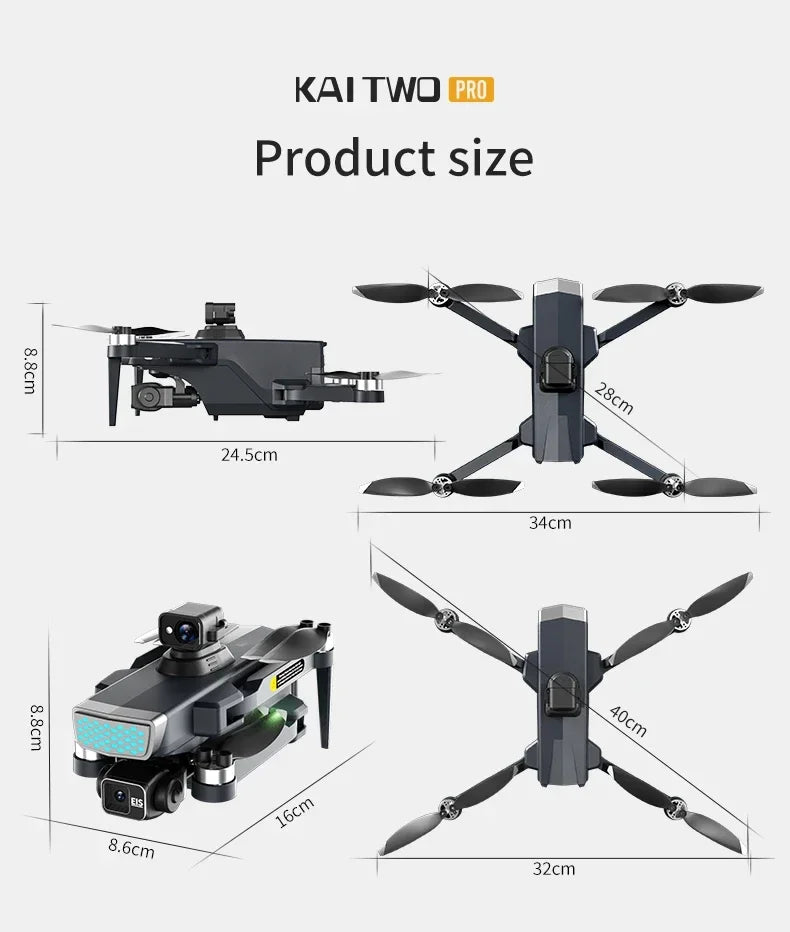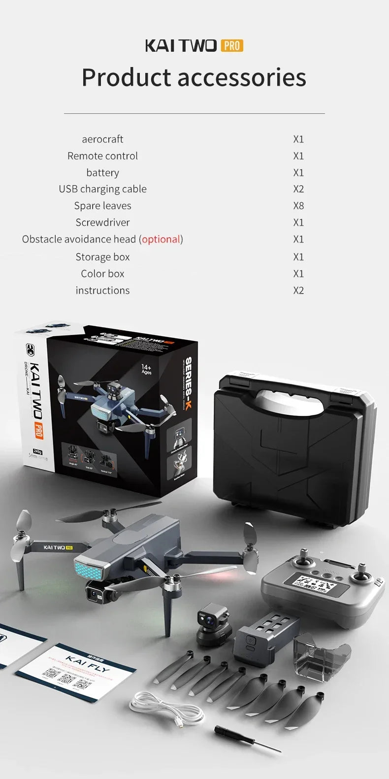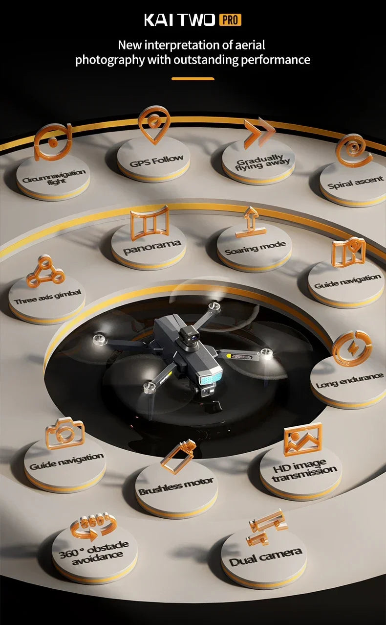 KAI TWO PRO GPS Drone 4K Professional 8K Three Axis Self Stabilization HD Camera 360° Obstacle Avoidance Brushless RC Quadcopter