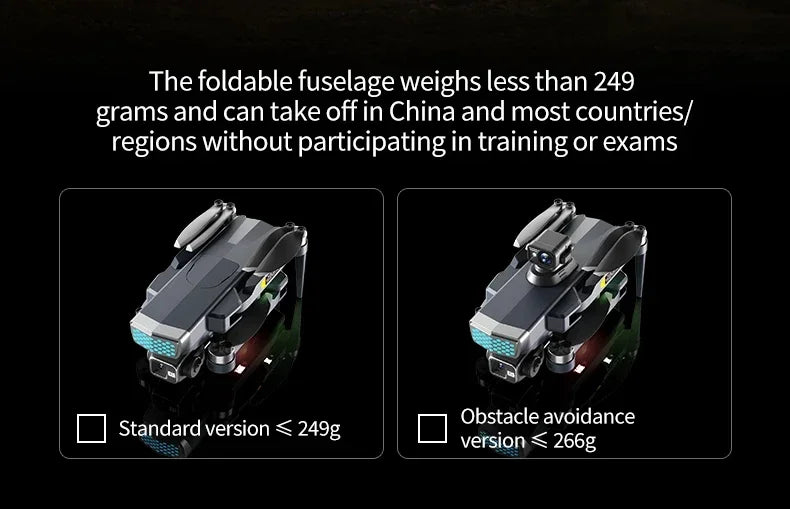 Fuselage take-off weight: 249g (without obstacle avoider)