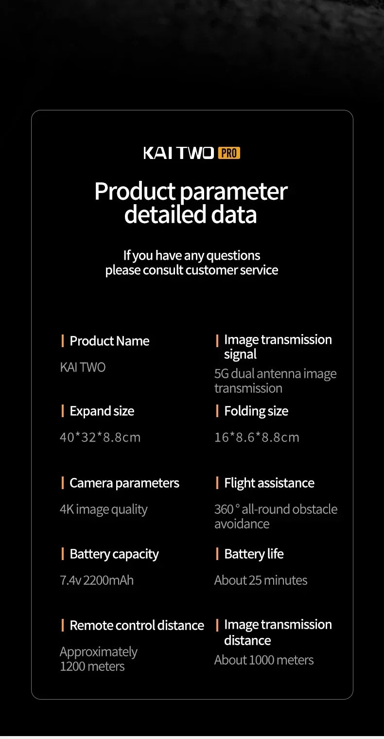 Three-axis mechanical gimbal, 4K pixels, 360° omni-directional laser obstacle avoidance GPS positioning + optical flow positioning dual-mode, brushless motor, 7-level wind resistance, out-of-control return to home, low power return to home, a key to return to home, 5g HD map transmission, skyrocketing mode, fade mode, panoramic shooting