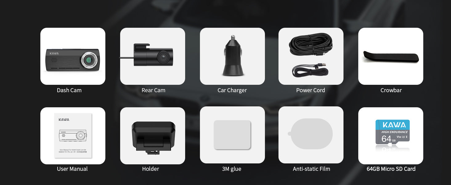 With built-in WiFi, KAWA D8 front and rear dash camera can connect to the Coffee car App( iOS and Android), 0 data is required to watch real-time footage, play recorded videos as well as download videos to your phone. Also, enjoy continuous OTA updates to automatically fix bugs and update software.