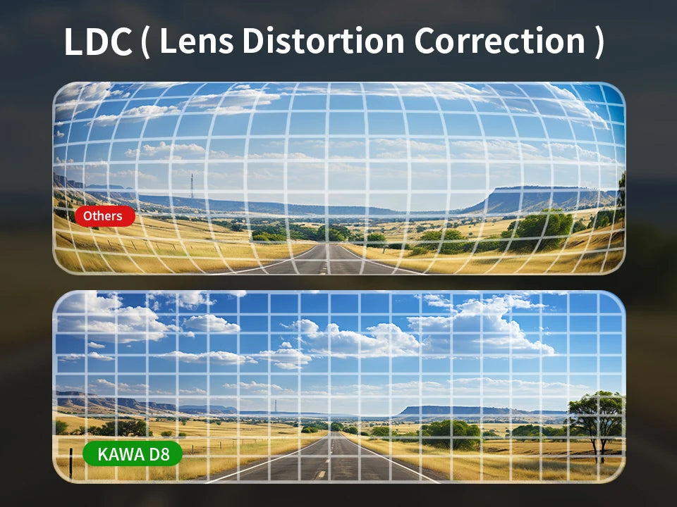 KAWA D8 car dash cam adopts Sony Starvis IMX415 chip, 7-layer optical glass and F1.8 aperture, along with 3D DNR technology for noise reduction processing, allowing for clear capture of license plates, road signs, and pedestrians even in low-light conditions.