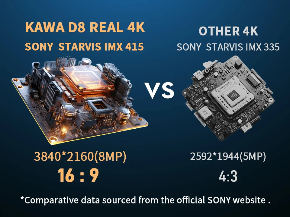 With an F1.8 large aperture, 7-Glass, and a 150 wide-angle lens, KAWA D8 captures ample light. Using 3D digital Noise Reduction technology and the Sony Starvis IMX415 sensor, it delivers clear starlight night vision even in ultra-low-light conditions.
