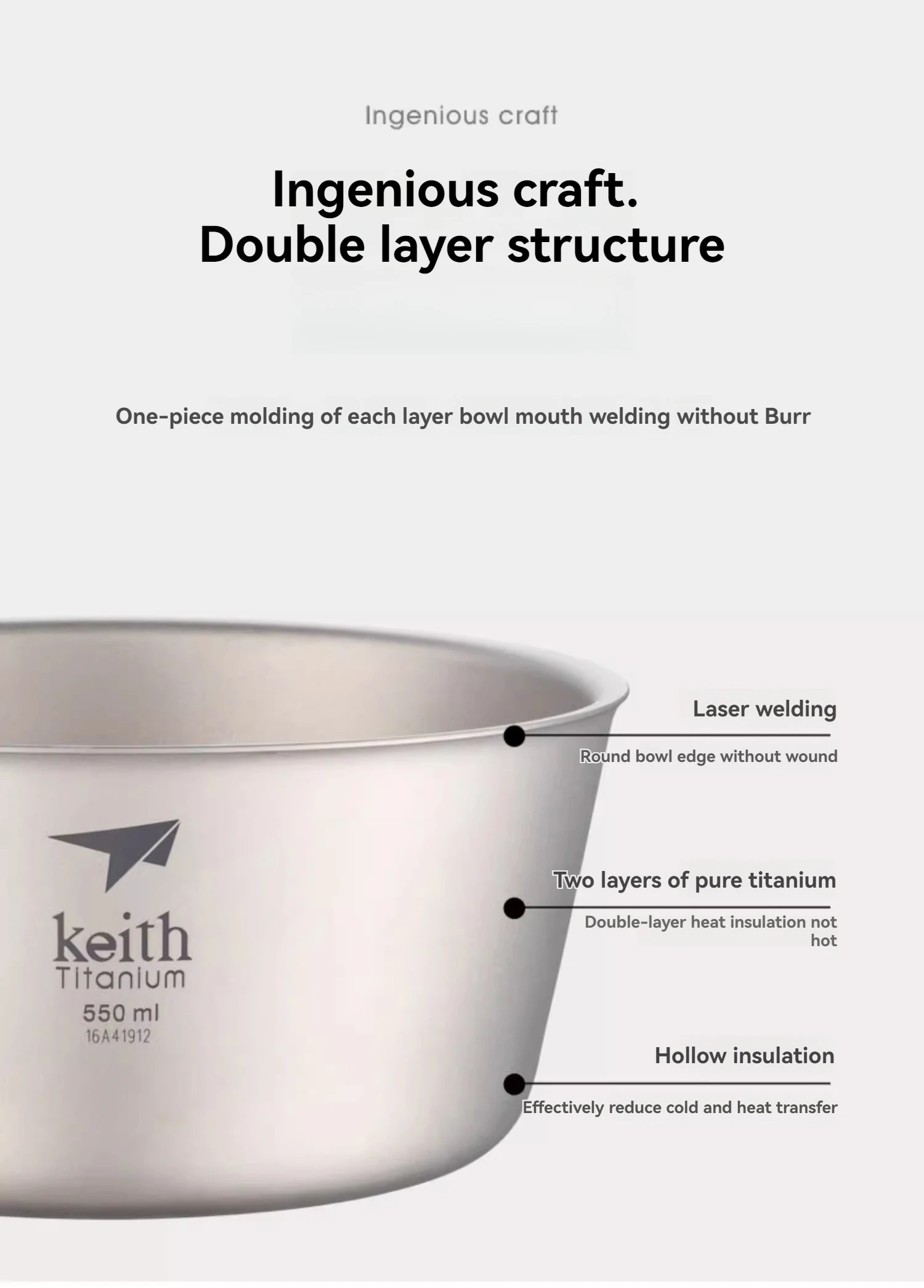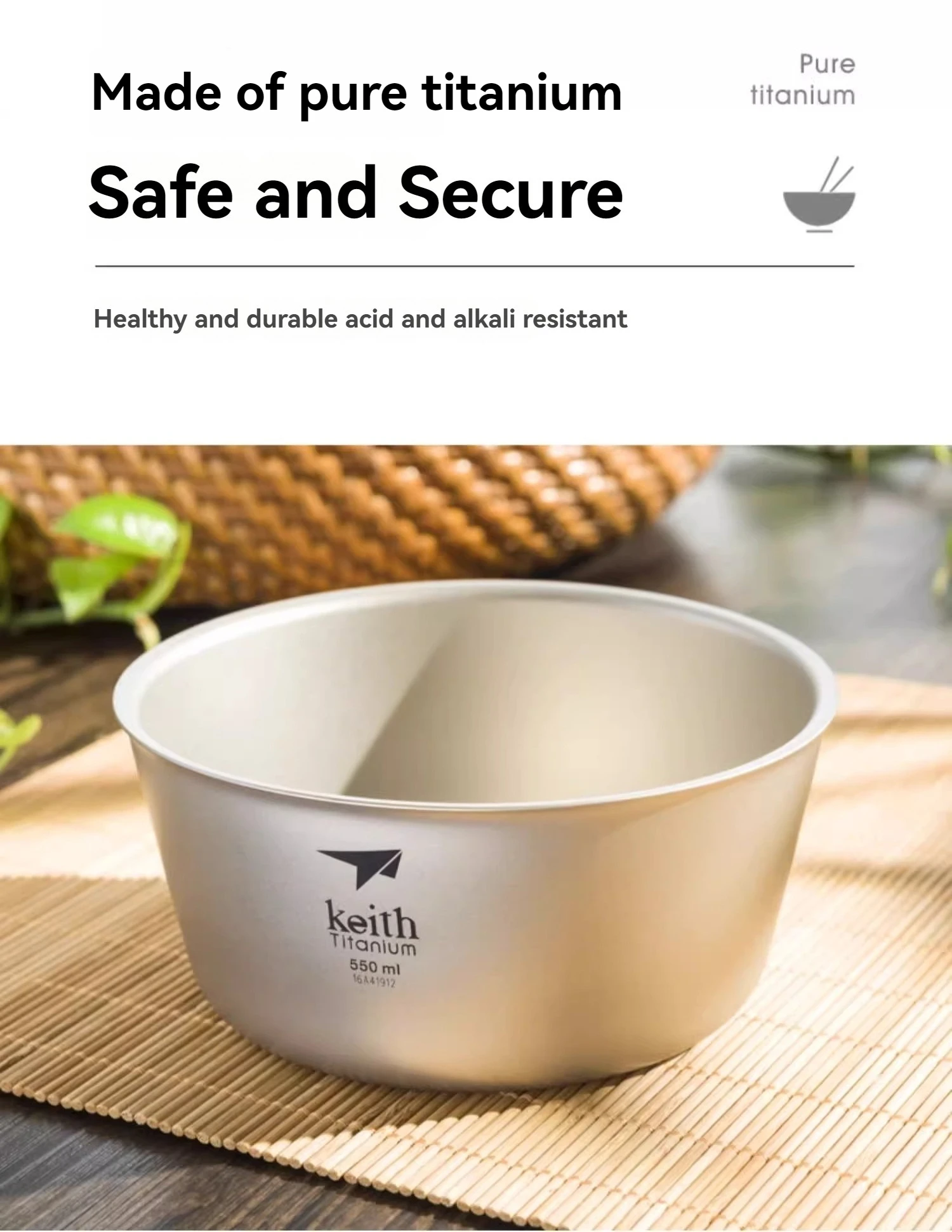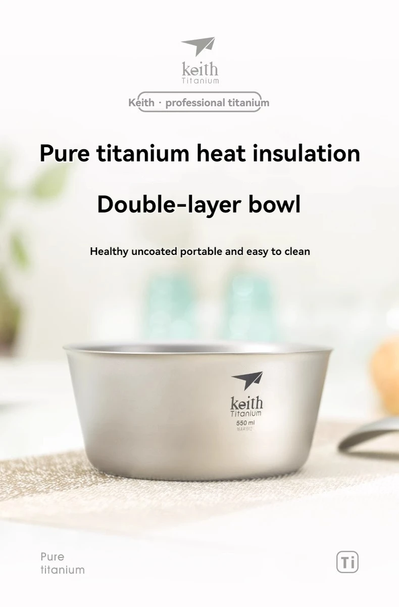 Keith Double-wall Titanium Rice Noodle Ramen Bowl Lunch Box 0.5L Salad Container Utensils For Tourism Tableware Ti5322