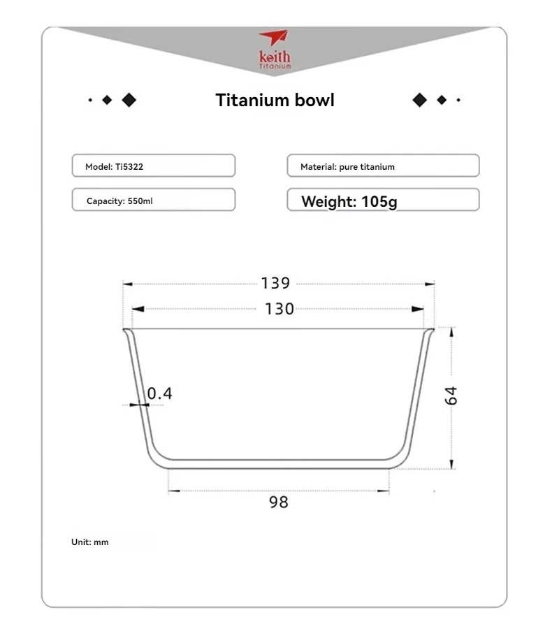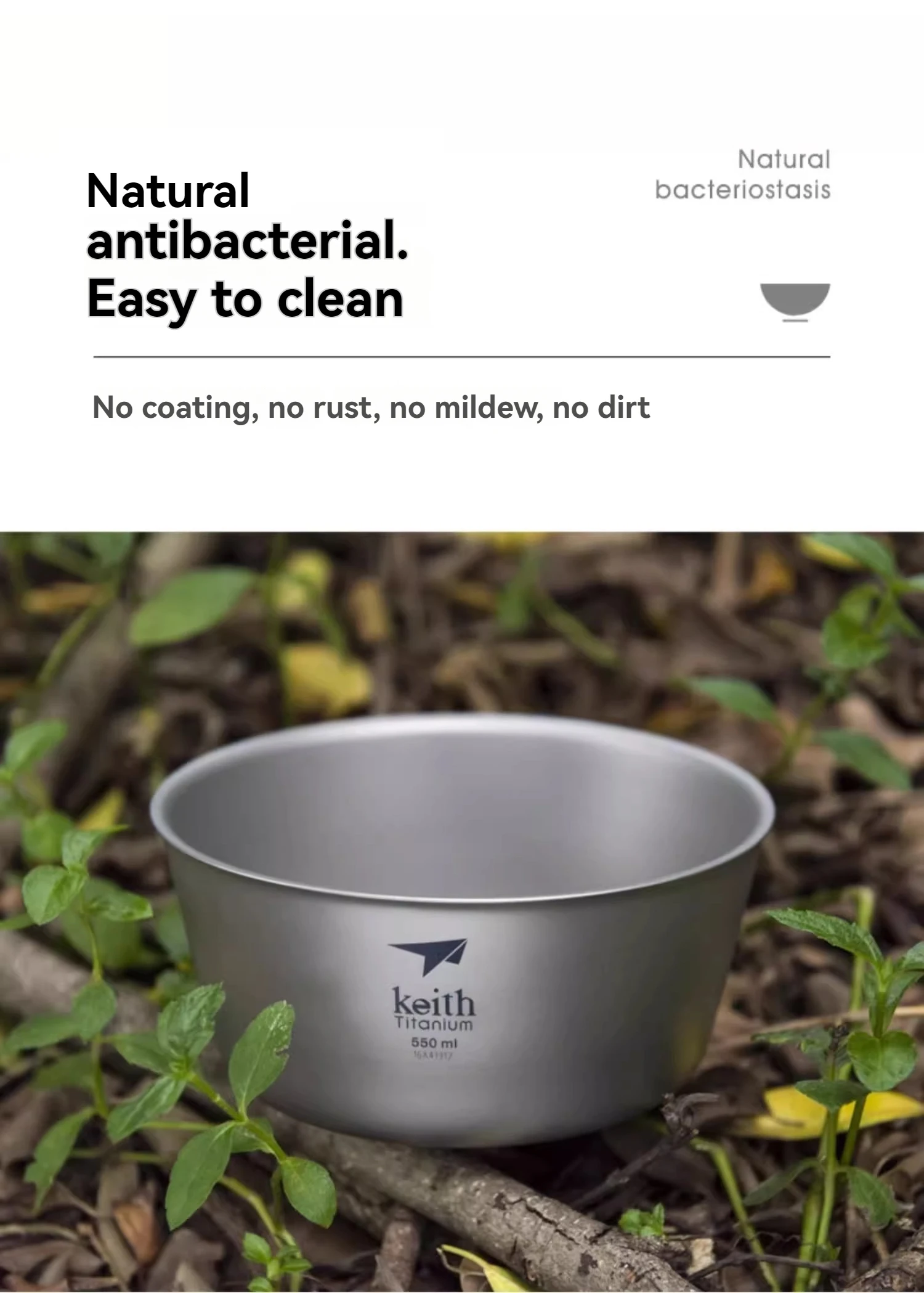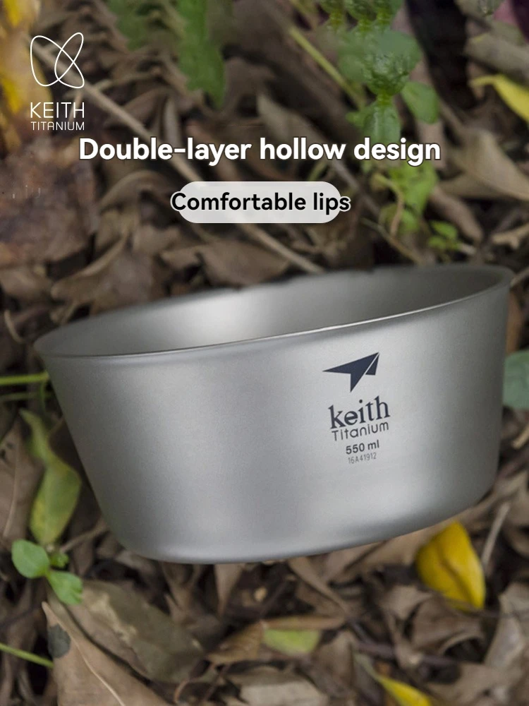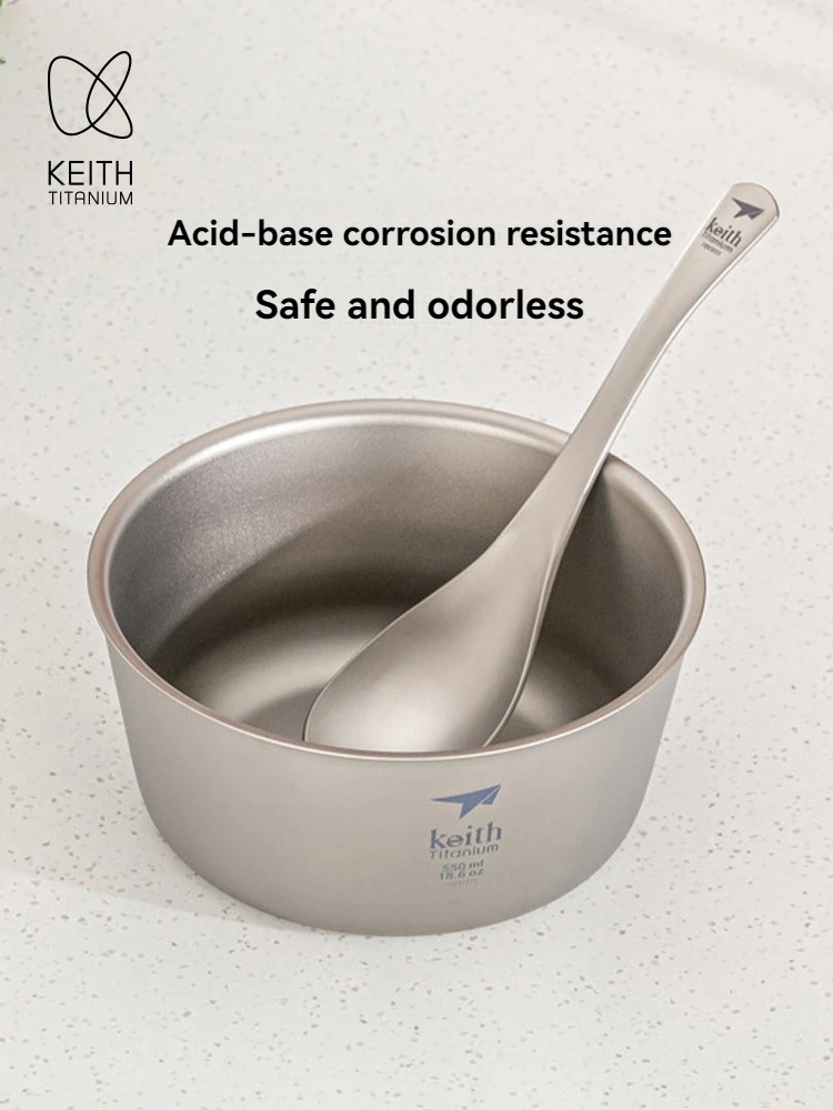 Keith Double-wall Titanium Rice Noodle Ramen Bowl Lunch Box 0.5L Salad Container Utensils For Tourism Tableware Ti5322