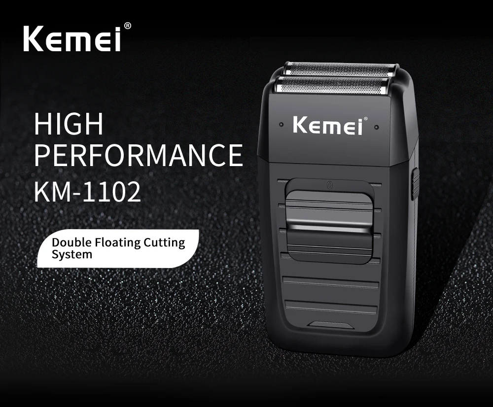 Kemei-1102 Rechargeable Cordless Shaver for Men Twin Blade Reciprocating Beard Razor Face Care Multifunction Strong Trimmer