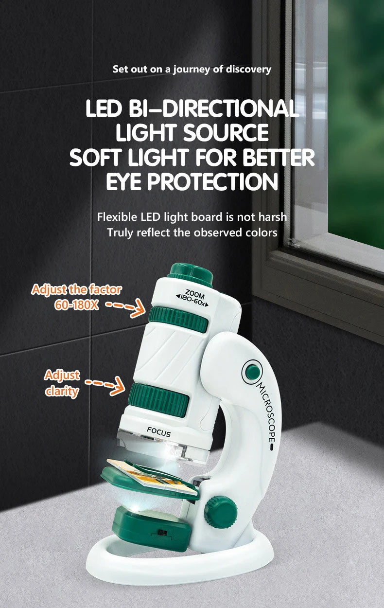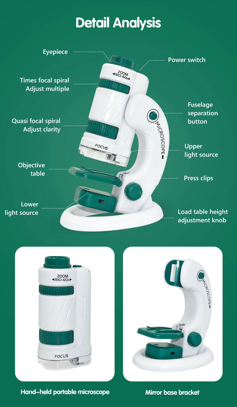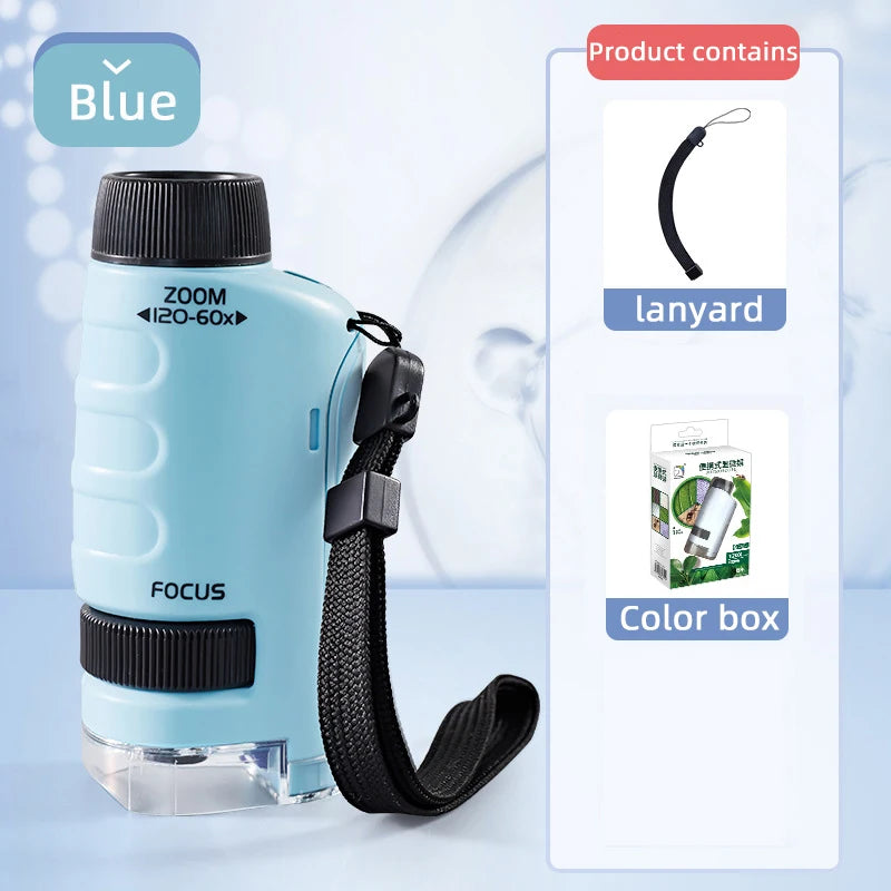 Kid Science Experiment Pocket Microscope Toy Kit 60-120x Educational Mini Handheld Microscope with Light Children STEM Toys Gift