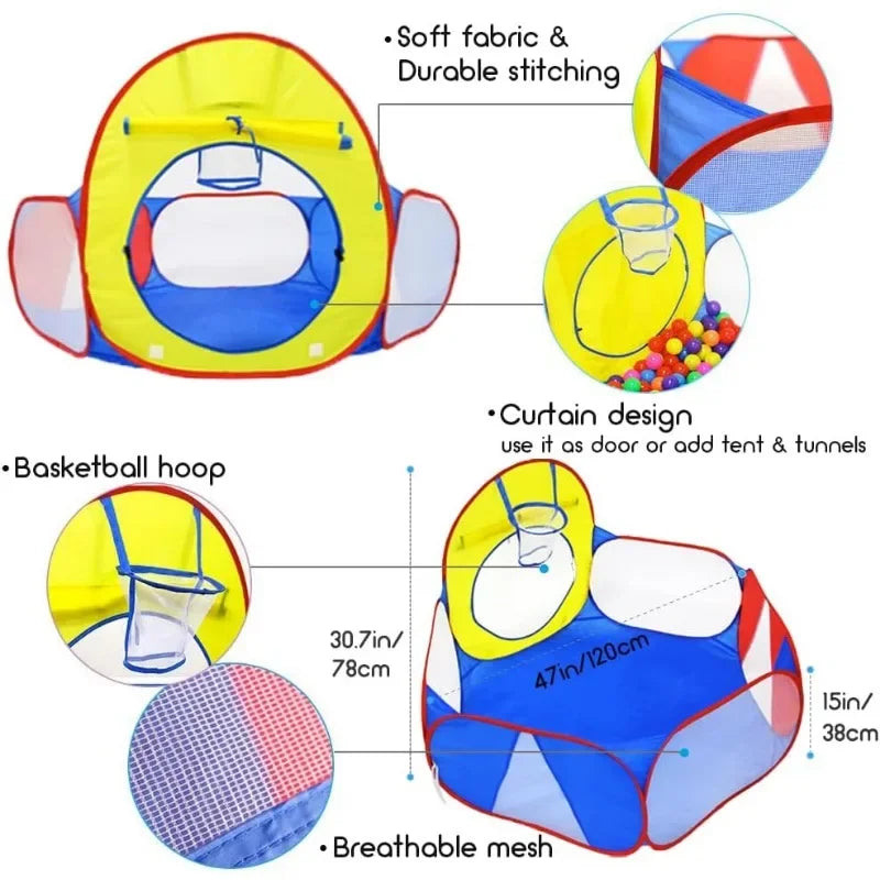 Kids Ball Pit Pop Up Childrens Ball Pits Tent for Toddlers Playhouse Baby Crawl Playpen with Basketball Hoop Zipper Storage Bag