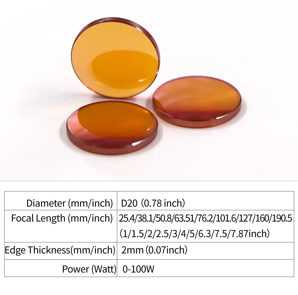 Kindlelaser 1PCS 5PCS Focus Lens USA CVD ZnSe DIA 20mm for 0-200W CO2 Laser Engraving Cutting Machine