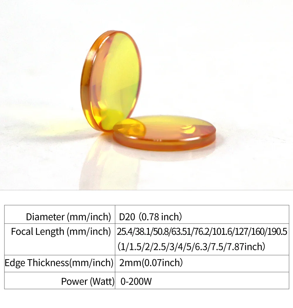 Kindlelaser Focus Lens 3/5/10PCS USA CVD Focus Lens ZnSe DIA 20mm FL50.8/63.5 for 0-200W CO2 Laser Engraving Cutting Machine