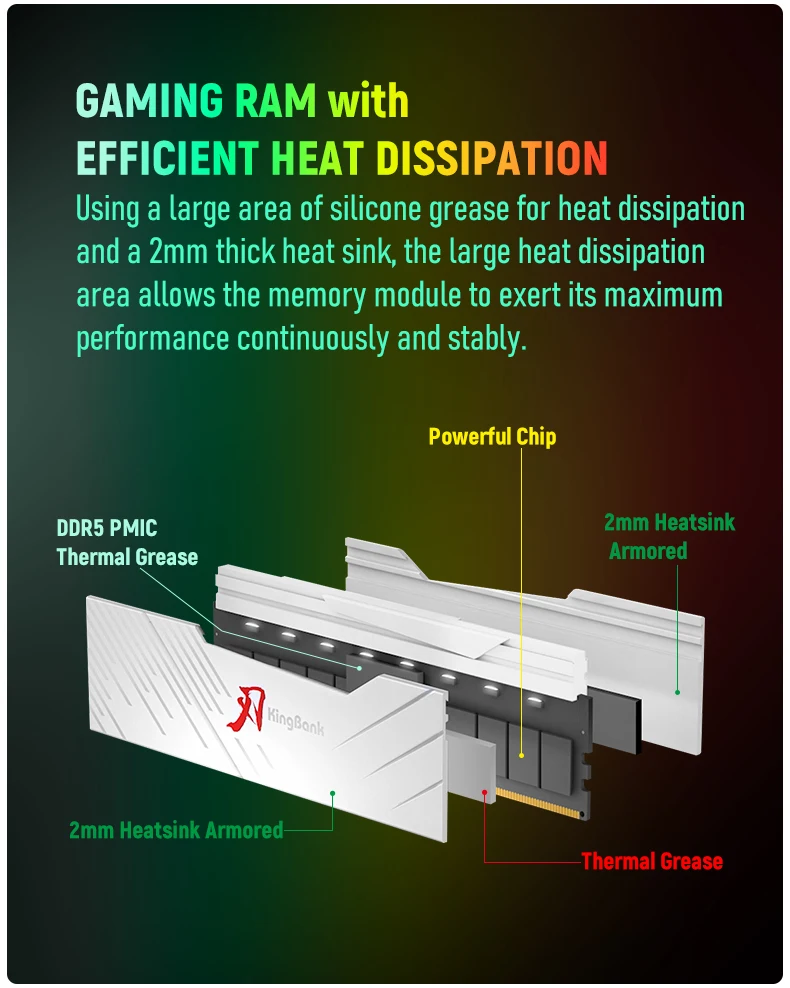• High-Performance DDR5 RAM :Experience the speed and efficiency of KingBank's DDR5 RGB Memory, designed to enhance your desktop computing experience.