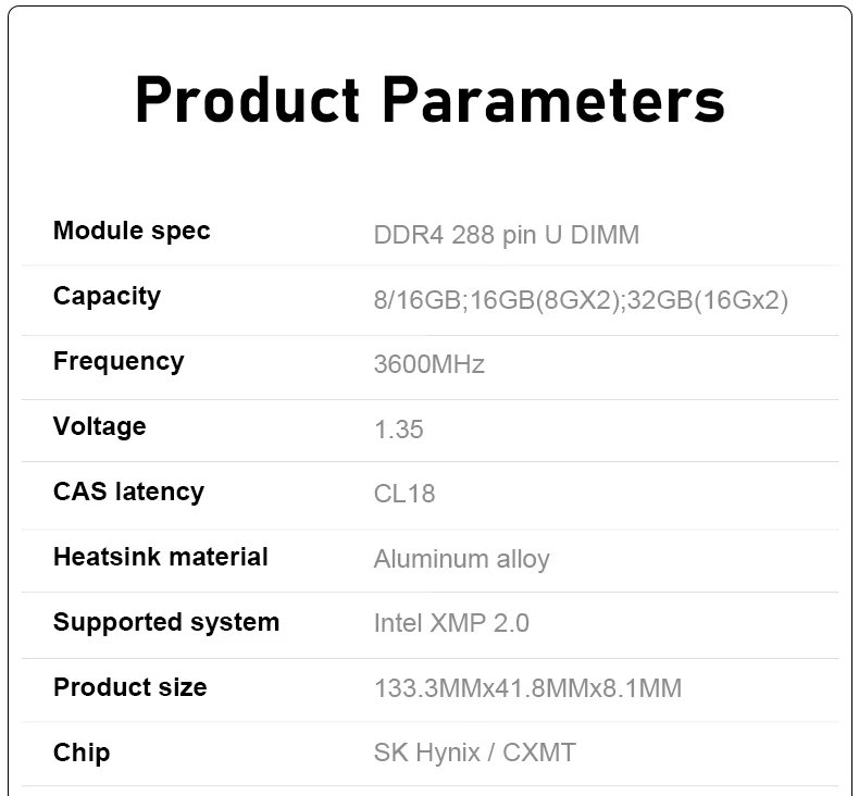 • Versatile Storage Capacity :With its 8GBx2 16GBx2 configuration, this memory module provides ample storage space for multiple applications, enhancing your computing experience.
