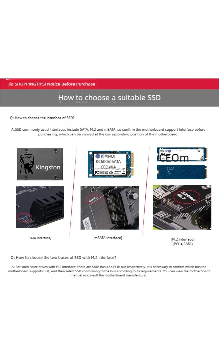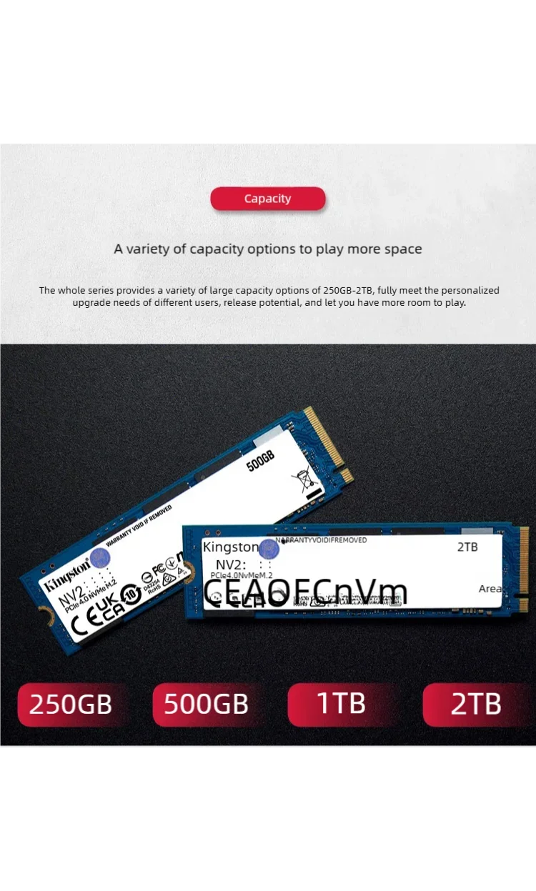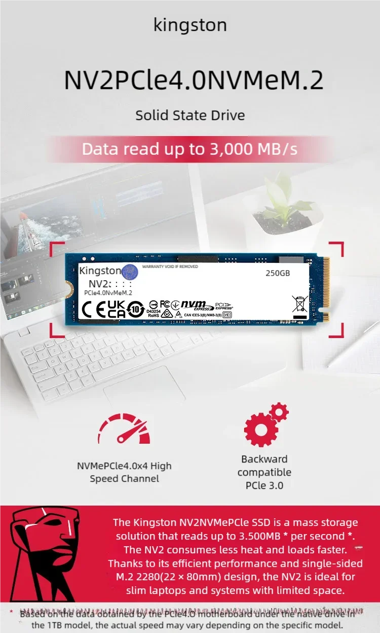 Kingston 500GB 1TB SSD M.2 (NVMe PCIe 4.0×4) Compatible with PCIe 3.0 NV2 Read Speed 3000MB/s AI Computer Accessories
