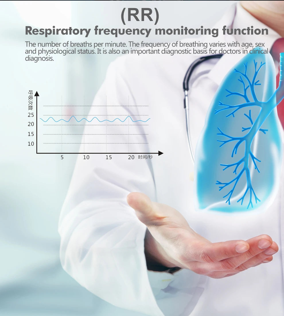 The number of breaths per minute.The frequency of breathing varies with age,sex and physiological status.It is also an important diagnostic basis for doctors in clinical diagnosis.