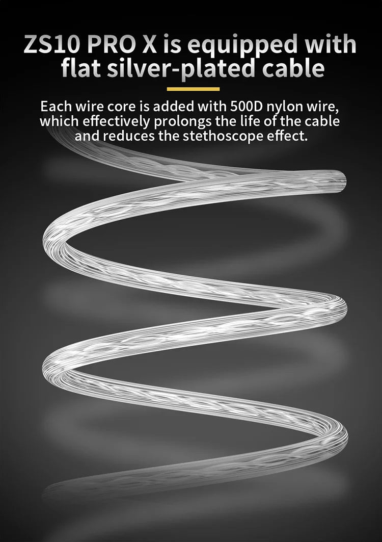 ZS10 PRO X is equipped with flatsilver-plated cable