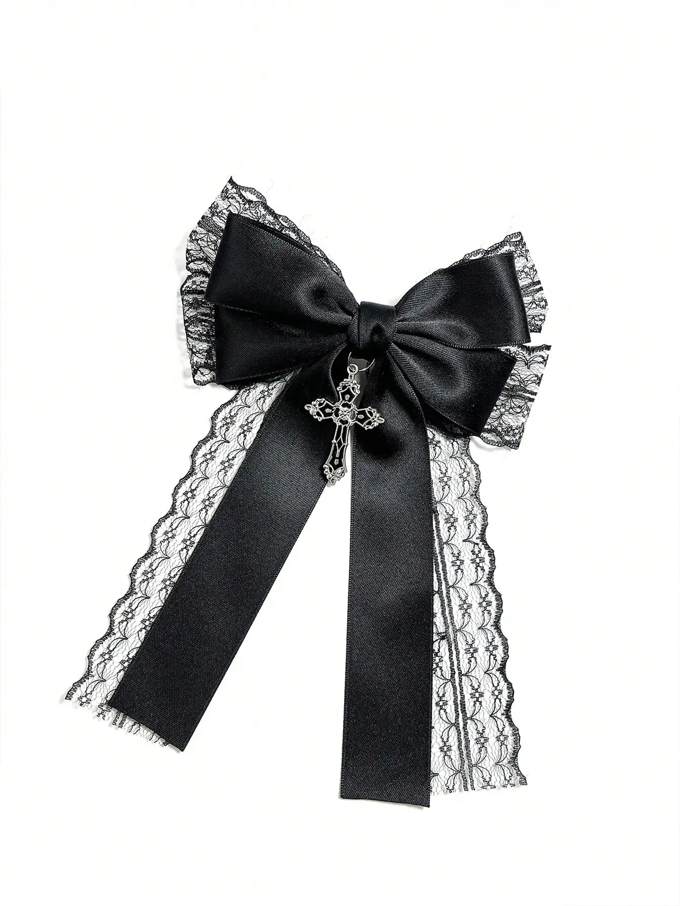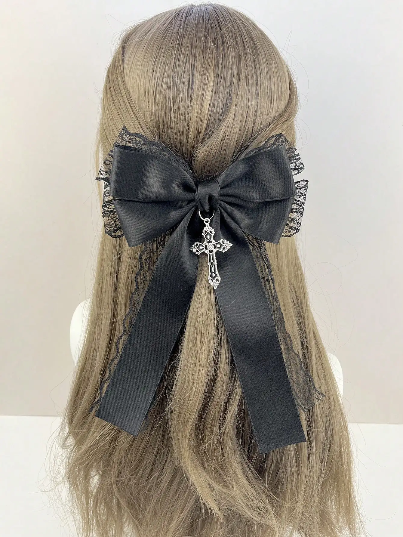 Ladies' black lace bow hair accessory hair clip Gothic cross with dark style