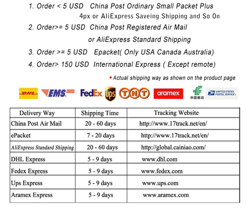 B. We ship worldwide by post mail,if your order over 200$USD,we ship it via DHL,UPS,FEDEX or EMS.