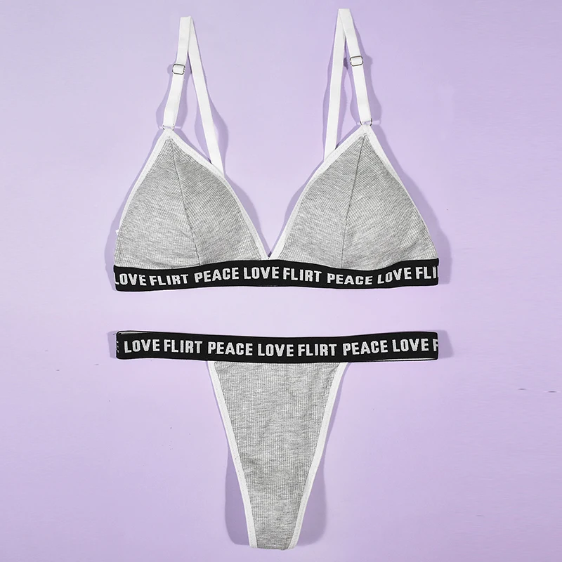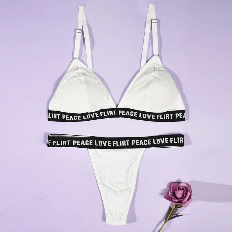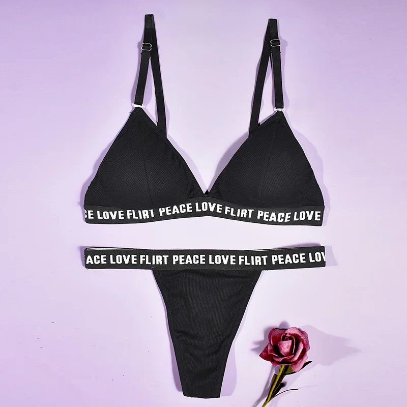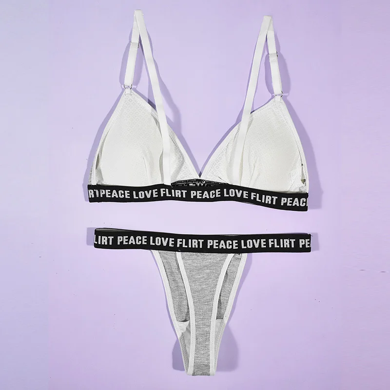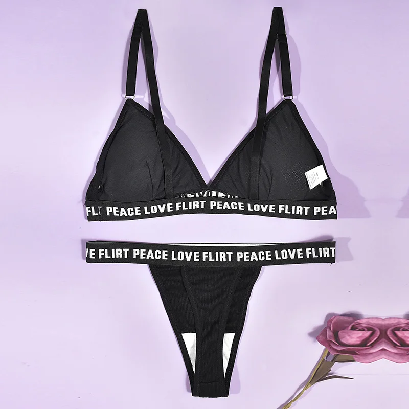 Ladies Fashion Letter-printed Underwear and Thong 2 Pieces with No Underwire Sexy Big Backless Bra 2 Pieces with 2 Sets