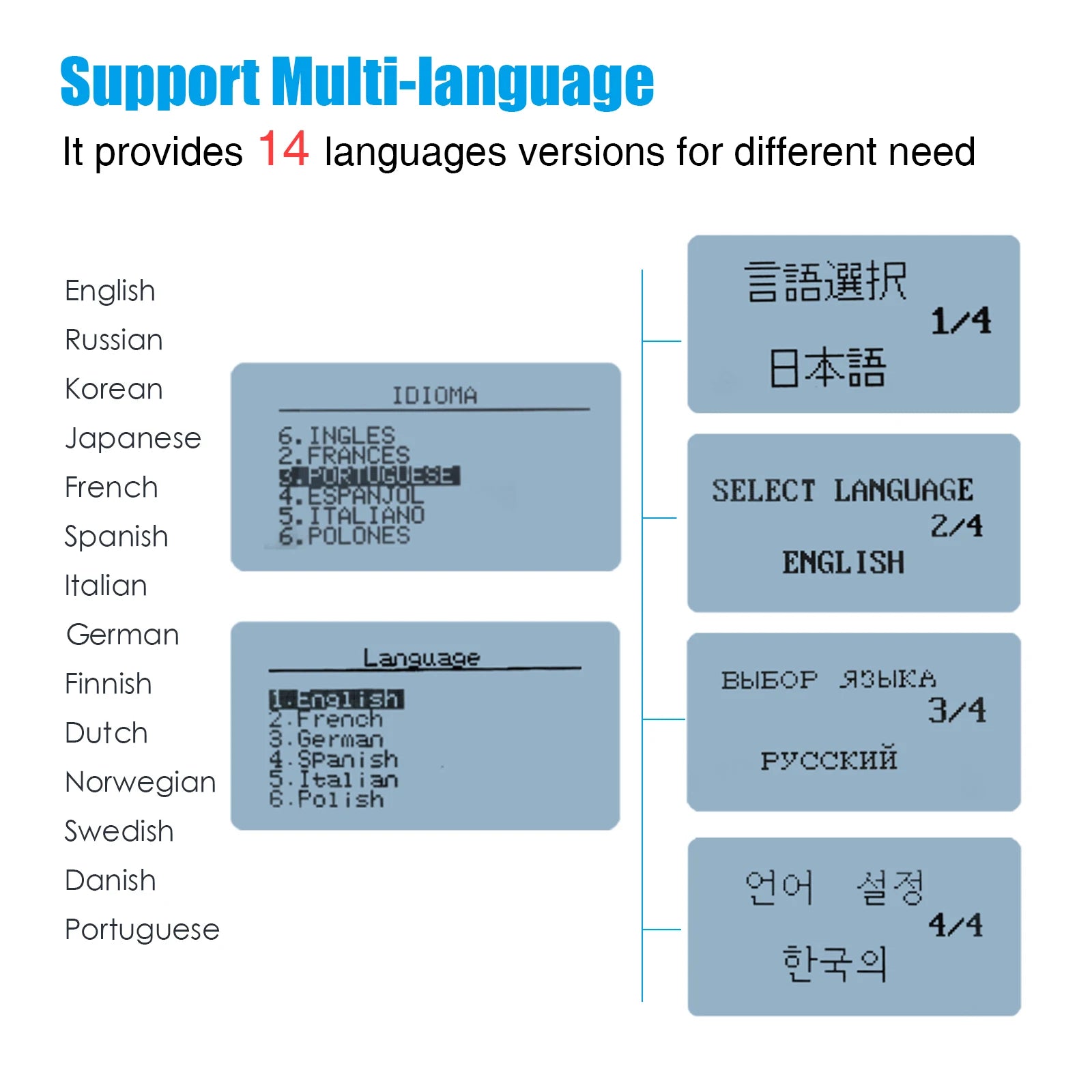 【Support Multi-language】It provides 14 languages versions for different need ,including: English, Russian, Korean Japanese.French, Spanish, Italian, German.Finnish, Dutch, Norwegian, Swedish, Danish and Portuguese