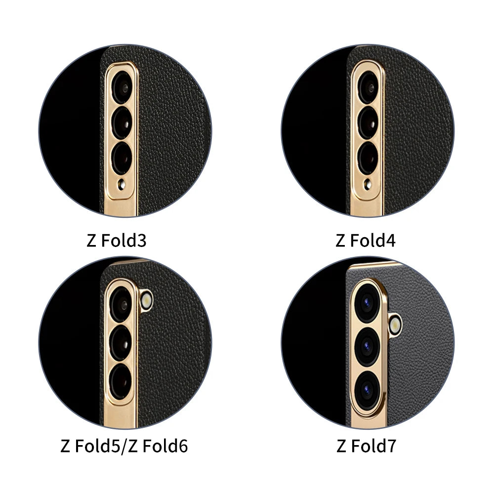 LANGSIDI Leather Case for Samsung Galaxy Z Fold 7 6 5 4 3 Fold6 Fold7 Gold Plating Magnetic Hinge Stand Cover with Mirror Film