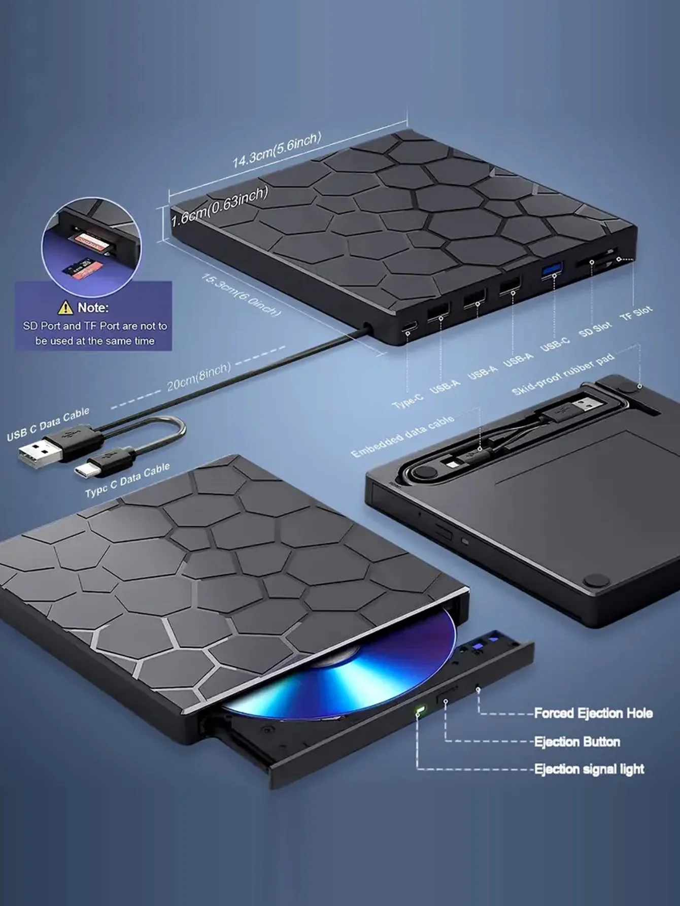 Laptop external CD/DVD drive, 8-in-1 USB 3.0 ultra-thin portable, player and burner CD/VCD/DVD