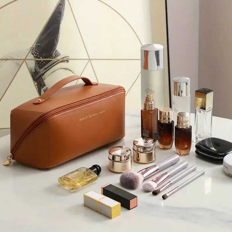 Large Capacity Pillow Storage Bag, PU Leather Waterproof, Portable Makeup Bag, Travel and Business Travel, Portable Toiletries B