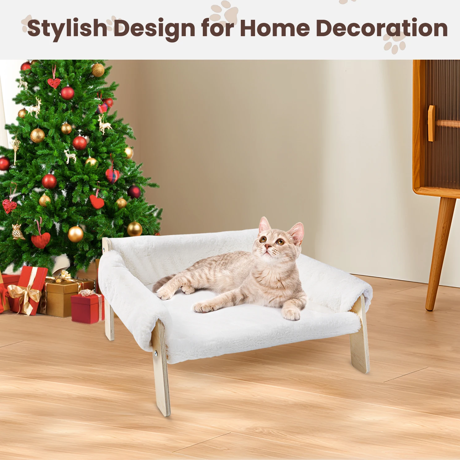 Large Cat Bed Sturdy Wooden Leg Raised Plush Cat Sofa Bed Kitten Bed for Indoor Cats - Soft Cat Couch