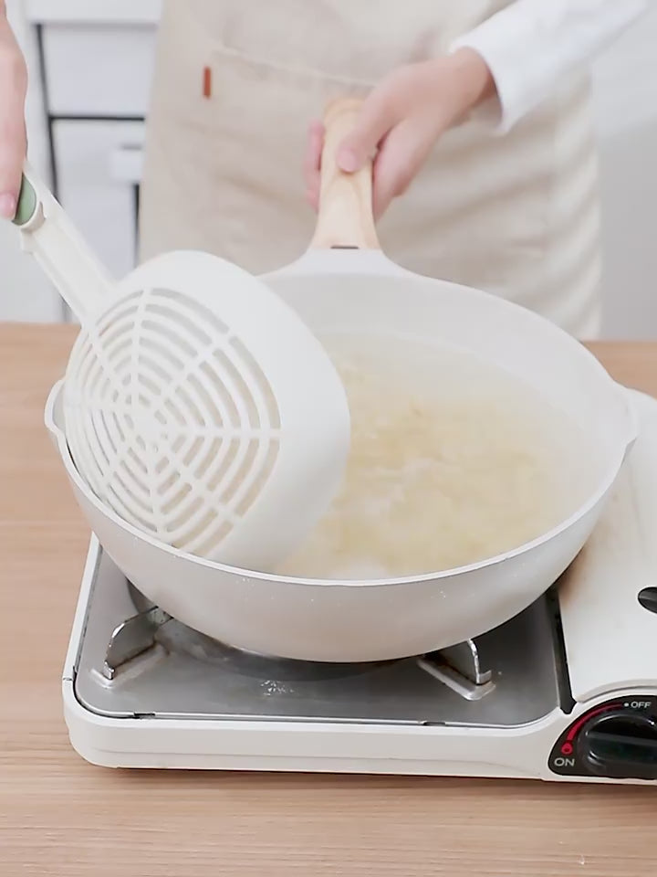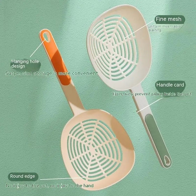 - Strainer Spoon grip bracket to get rid of the trouble of slipping, snap bracket natural support in the pot wall to avoid slipping