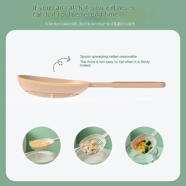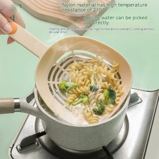 - Multi-functional Cooking Spoon Strainers: Deeper and wider spoon noodles for one pot at a time, high-temperature resistant, evenly filtered holes, Increased capacity spoon, concave surface deepening, Strainer Spoon increase the use of area, washing and leaching fruits, etc.