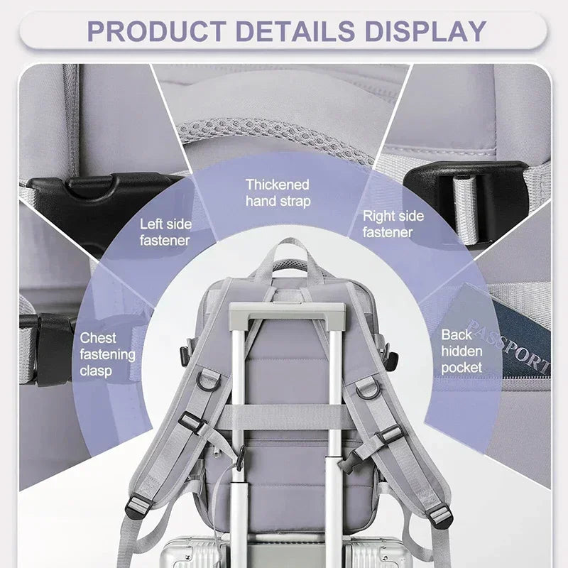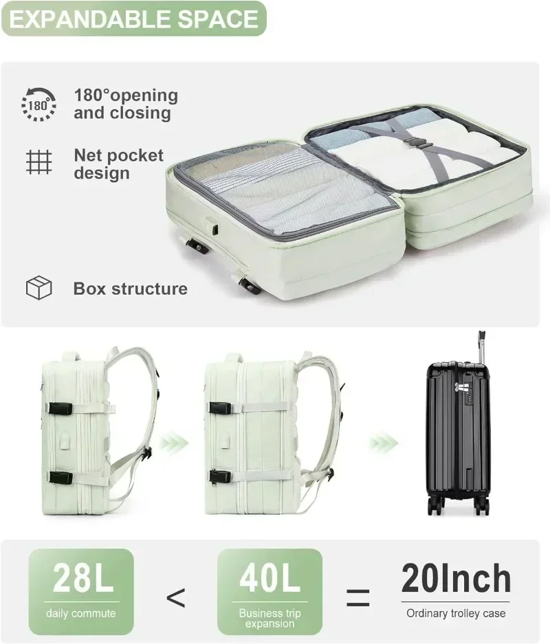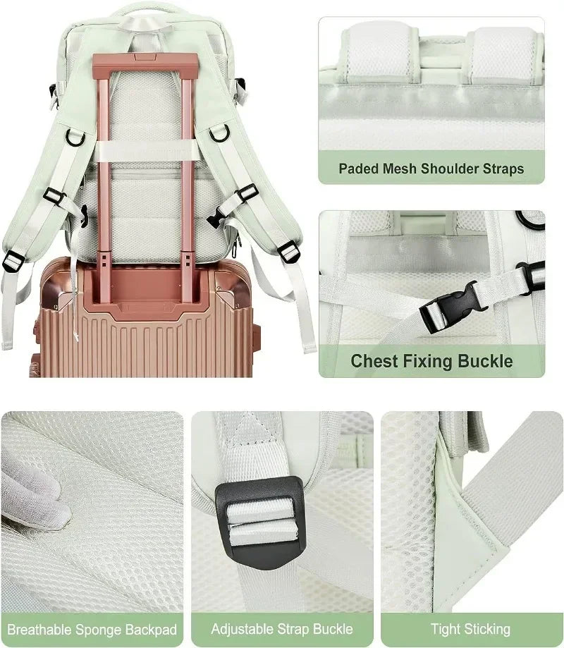 【With Trolley Sleeve & Anti-theft Pocket】A trolley sleeve on the back allows the travel backpack to attach to the handle of the carry-on luggage for hands-free transport, and easier carrying.
