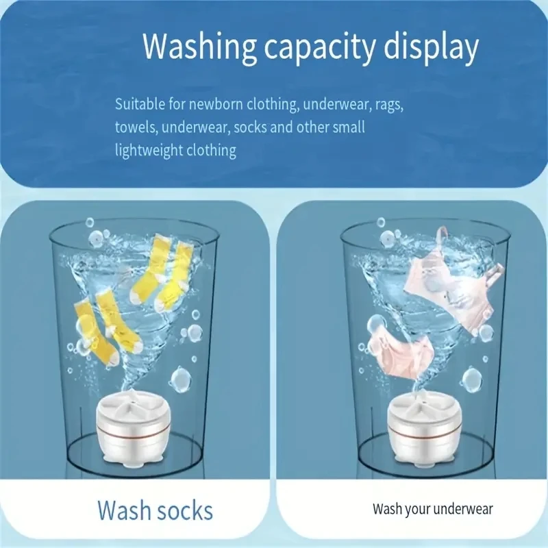 Mini Washing Machine USB Rotating Turbine Portable Washing Machine For Socks Underwear Wash Dishes For Travel Home Business Trip