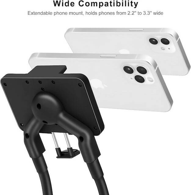 - Multifunctional & DIY – unlike other stiff stand, our gooseneck phone stand is super flexible and multitask. You can strap it around your neck, or use it stand on the desk or under the mattress, wrap it around your car or bicycle steering wheel, etc,. You can bend it into any shape you need it to use, just get your imagination started, you will find endless uses of this phone holder.
