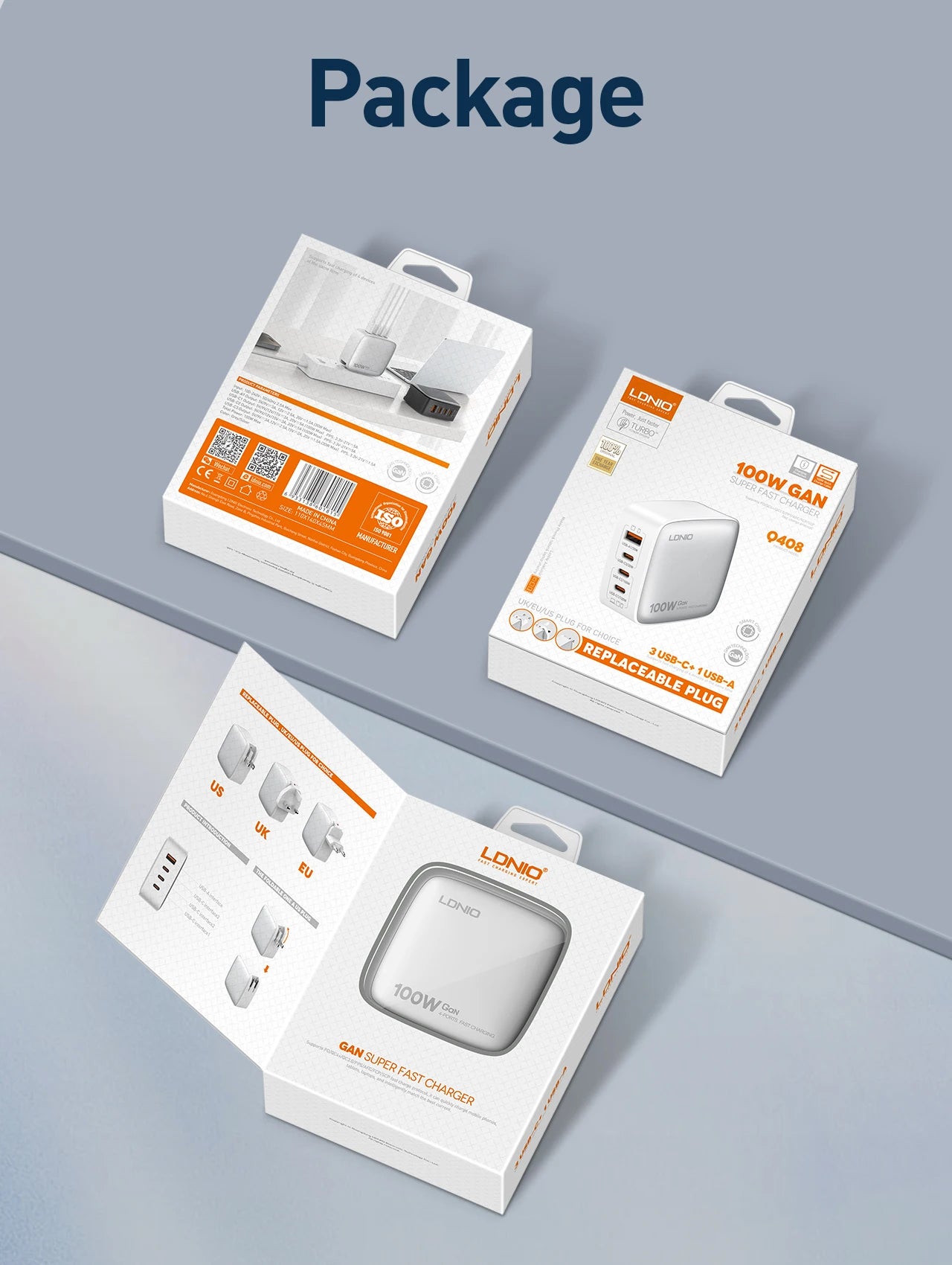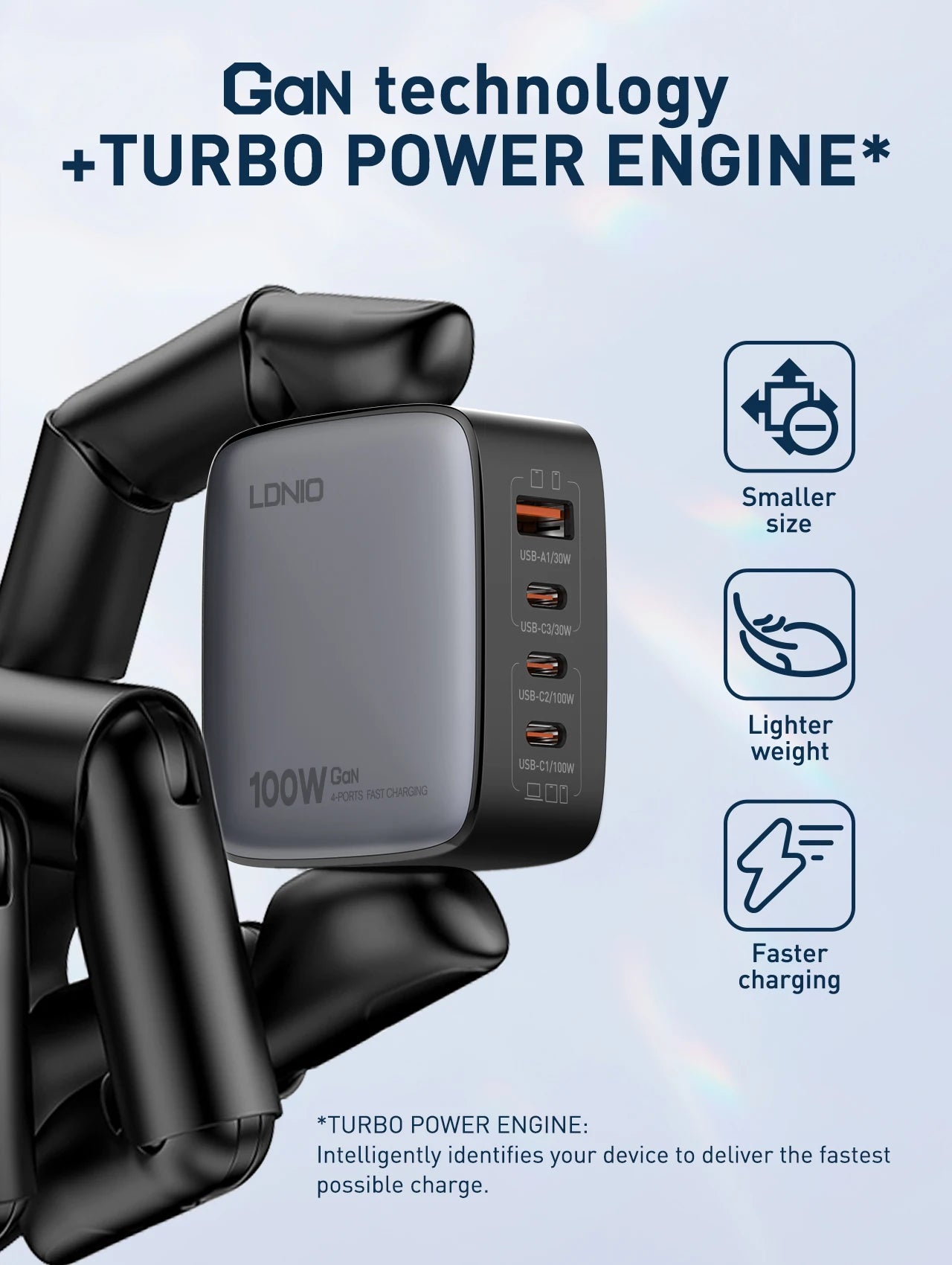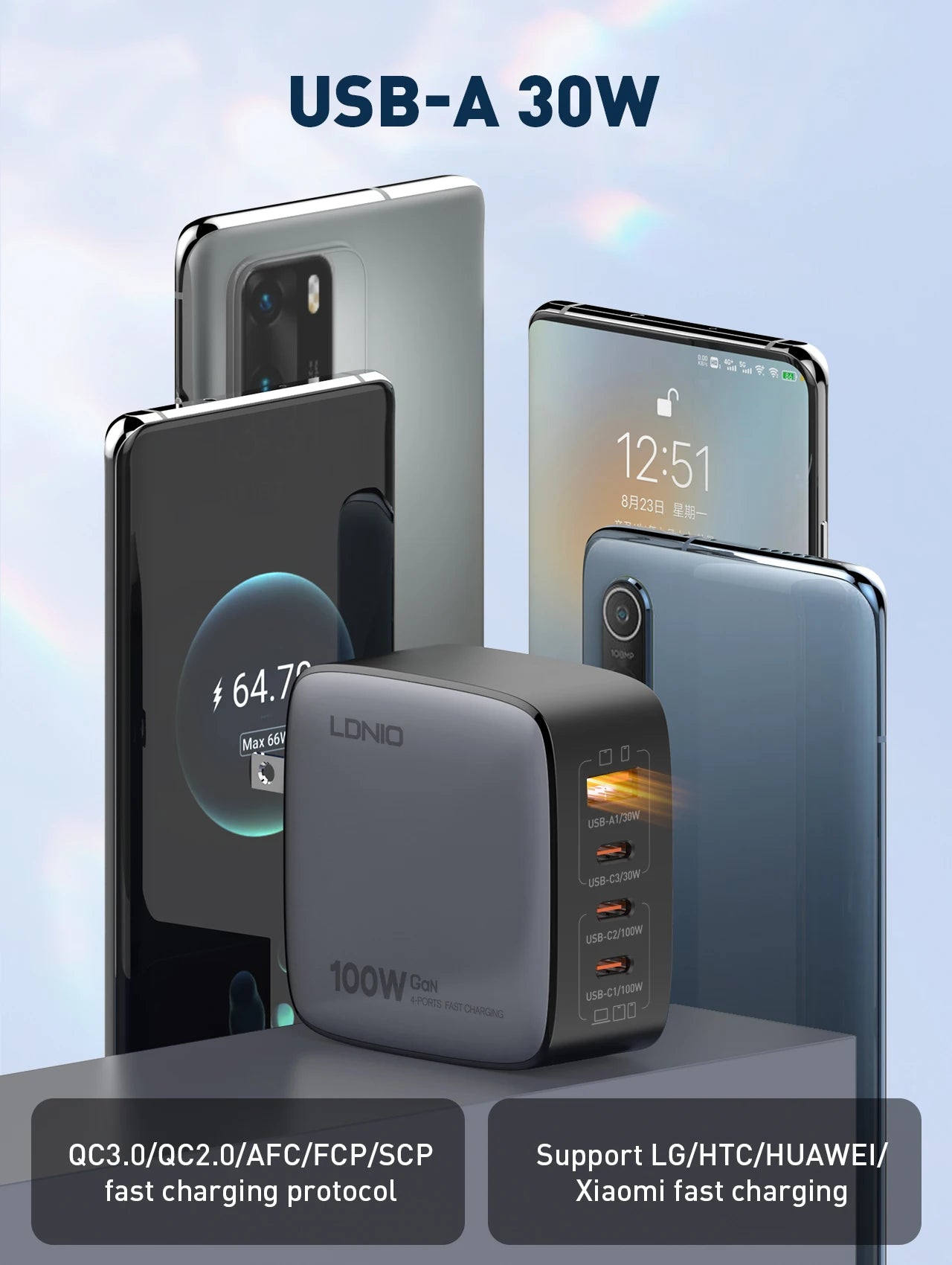 LDNIO 100W GaN Charger Multi-port Type C Travel Adapter For MacBook iPad iPhone 12-15 Pro Max Xiaomi 14 Galaxy S23 Usb C Charger
