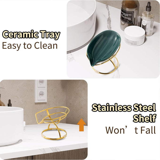 Leaf Shaped Soap Dish Premium Ceramic Soap Bar Holder with Self-Drainage System for Shower