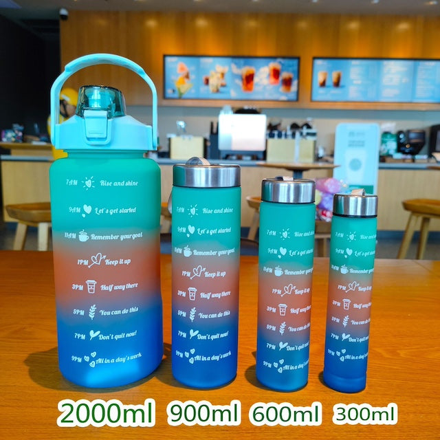 Leak-proof 4 in 1 Motivational Bottle, Plastic Water Bottle With Straw, Time Marker Drinking Bottles - 2000ml, 900ml, 600ml, 300ml