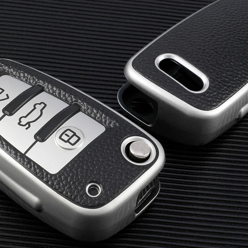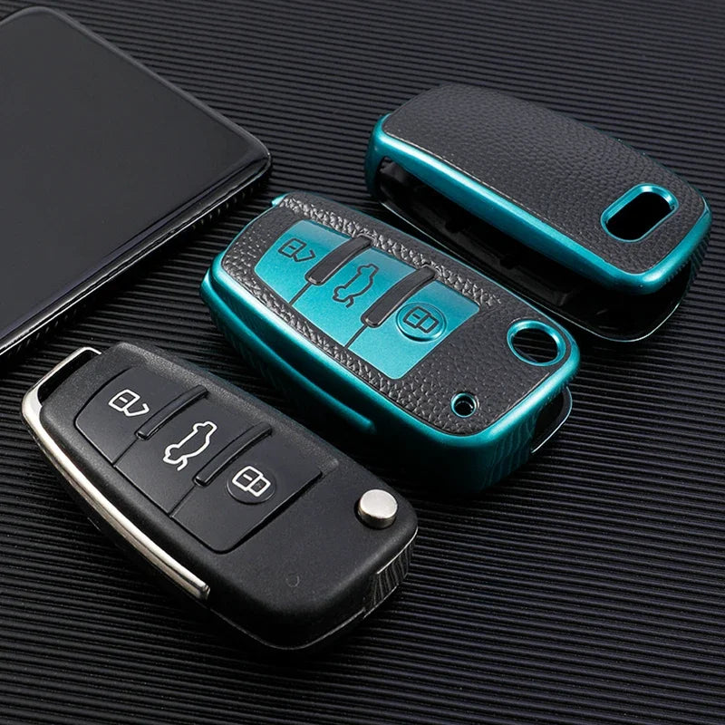 Leather TPU Car Folding Key Cover Case for Audi A3 8L 8P A4 B6 B7 B8 A6 C5 C6 4F RS3 Q3 Q7 TT 8L 8V S3 Key Fob Shell Accessories