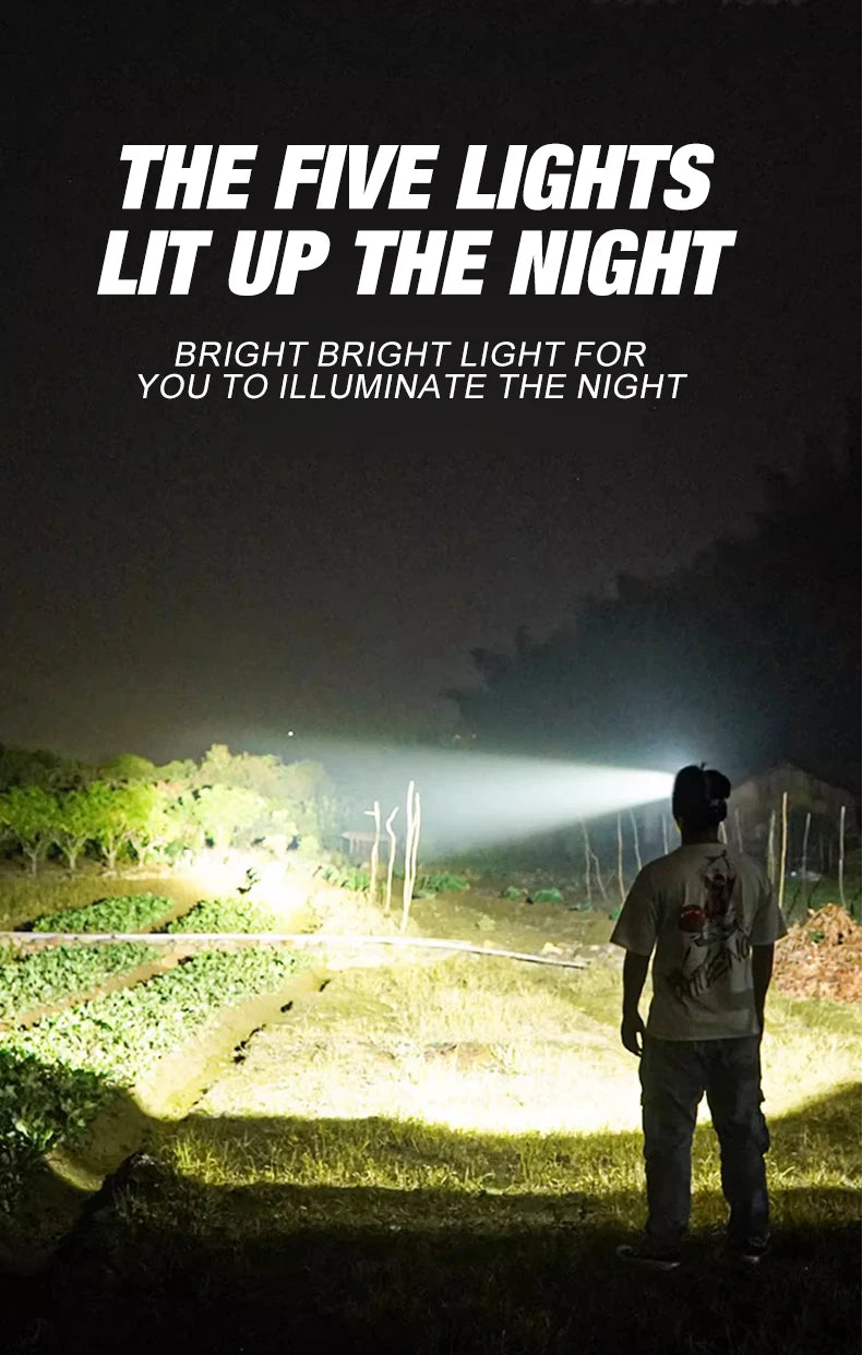 LED five hole work light with four lighting modes supporting USB charging and equipped with a charging indicator light